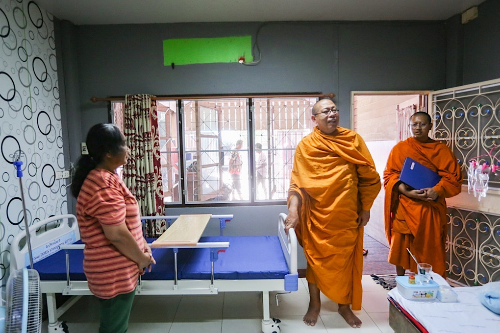 วันที่ 20 ธันวาคม 66 พระครูปลัดสิทธิวัฒน์ (หลวงพี่น้ำฝน) เจ้าอาวาสวัดไผ่ล้อม อ.เมือง จ.นครปฐม นำคณะสงฆ์และเจ้าหน้าที่ลงพื้นที่ไปเยี่ยมดูอาการ นางแหวน กะลำพัก อายุ 83 ปี ที่หมู่บ้านแสนสุข เลขที่ 107/160 ม.2 ต.นครปฐม อ.เมือง จ.นครปฐม ซึ่งเป็นผู้ป่วยนอนติดเตียง มีการเจ็บป่วยสะโพกหัก เดินไม่ได้ และยังมีโรคคประจำตัวด้วยโรคหัวใจ เบาหวาน ความดัน พร้อมกับได้นำเตียงผู้ป่วย ซึ่งเป็นเตียงที่อยู่ในธนาคารเตียงของวัดไผ่ล้อมไปมอบให้ เนื่องจากได้รับการร้องขอจากหลานสาวว่าไม่สามารถจัดหาเตียงสำหรับผู้ป่วยมาให้คุณยายแหวนได้ใช้ชีวิตหลังจากประสบอุบัติเหตุได้อย่างปกติ ซึ่งนอกจากจะมอบเตียงผู้ป่วย ยังได้มอบปัจจัยส่วนหนึ่งเป็นทุนสำหรับใช้ในการซื้ออุปกรณ์และยาในการรักษาตัวให้กับคุณยายแหวน เพื่อเป็นกำลังใจให้ด้วย