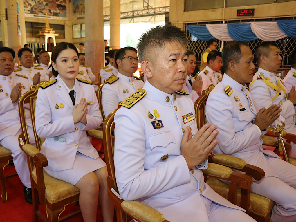 จากนั้น รองผู้ว่าราชการจังหวัดกาญจนบุรี นำหัวหน้าส่วนราชการ และพสกนิกรทุกหมู่เหล่า ร่วมประกอบพิธีทำบุญตักบาตรข้าวสารอาหารแห้งพระสงฆ์และสามเณร จำนวน 49 รูป เพื่อส่งเสริมให้พสกนิกรทุกหมู่เหล่ารวมกันทำความดีถวายเป็นพระราชกุศล แสดงออกถึงความจงรักภักดีต่อสถาบันพระมหากษัตริย์ นำหลักคำสอนทางศาสนามาใช้ในการดำเนินชีวิต สืบสานวัฒนธรรมอันเกี่ยวเนื่องกับสถาบันหลักของชาติและเสริมสร้างความรักความสามัคคีของประชาชน