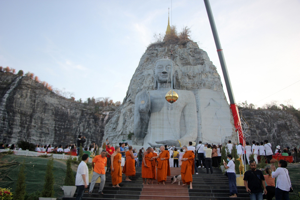 ชาวสุพรรณบุรีปลื้มสาธุชนแห่ร่วมพิธียกพระเกตุมาลา พระพุทธปุษยคีรีศรีสุวรรณภูมิ (หลวงพ่ออู่ทอง) หนัก 8 ตัน สูง 1.60 เมตร ยอดพระเกตุมาลา หุ้มด้วยทองคำแท้ หนัก 60 กิโลกรัม หนึ่งเดียวในไทย ยิ่งใหญ่ในโลก มรดกคู่ฟ้าดิน โดรน 400 ลำ บินแปรอักษรบนท้องฟ้า หน้าผาเขามังกรบิน อย่างยิ่งใหญ่และสวยงาม