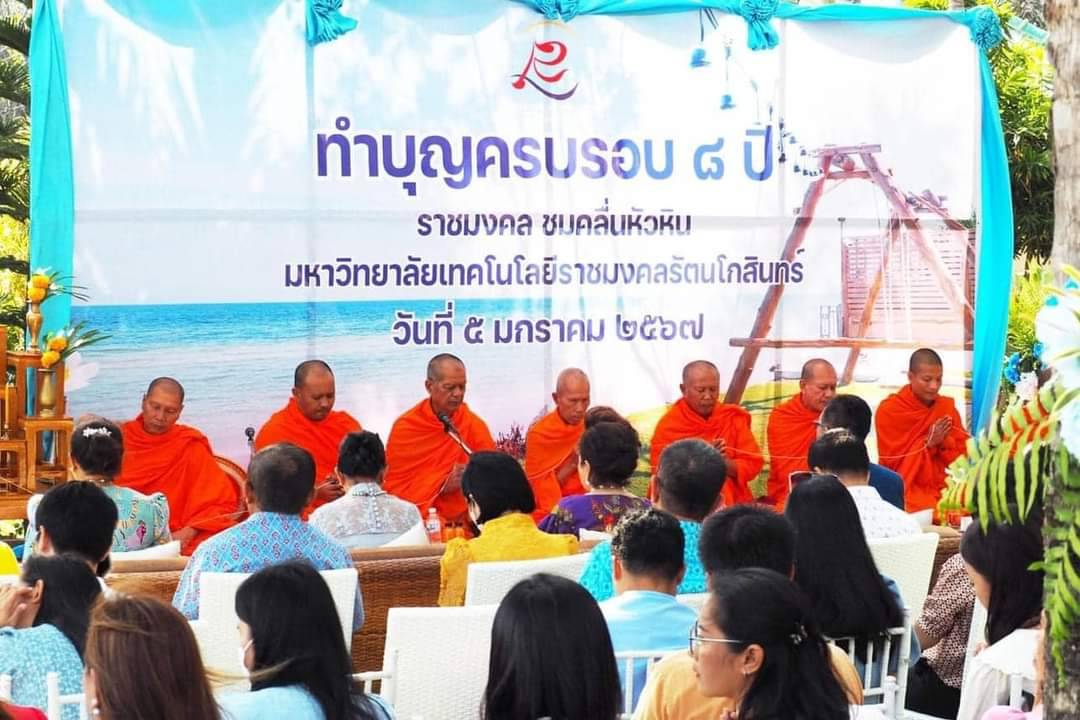 มหาวิทยาลัยเทคโนโลยีราชมงคลรัตนโกสินทร์ นำโดย รองศาสตราจารย์ ดร.อุดมวิทย์ ไชยสกุลเกียรติ อธิการบดีมหาวิทยาลัยเทคโนโลยีราชมงคลรัตนโกสินทร์ เป็นประธานในงานทำบุญครบรอบ 8 ปี ราชมงคลชมคลื่นหัวหิน ของการก่อตั้ง ทั้งนี้มี นายพลกฤต พวงวลัยสิน นายอำเภอหัวหิน ผู้ช่วยศาสตราจารย์นภาพร นาคทิม รองอธิการบดีประจำวิทยาเขตวังไกลกังวล หัวหน้าส่วนราชการ และภาคเอกชน คณะผู้บริหาร คณาจารย์ พนักงาน และแขกผู้มีเกียรติ เข้าร่วมพิธี