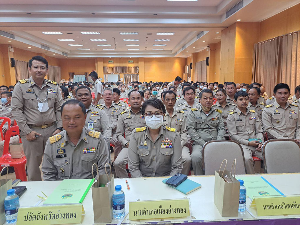 โดยมี นายพิริยะ ฉันทดิลก ผู้ว่าราชการจังหวัดอ่างทอง กล่าวรายงานพร้อมให้การต้อนรับ พร้อมด้วย นายศักดิ์ดา บรรดาศักดิ์ รองผู้ว่าราชการจังหวัดอ่างทอง นายสุรเชษ นิ่มกุล นายกองค์การบริหารส่วนจังหวัดอ่างทอง นายอำเภอทั้ง 7 อำเภอ หัวหน้าส่วนราชการ กำนัน ผู้ใหญ่บ้าน สารวัตรกำนัน ผู้ช่วยผู้ใหญ่บ้าน 513 หมู่บ้านกว่า 500 คน เข้าร่วมประชุมแลกเปลี่ยนความคิดเห็น นำเสนอปัญหาต่างๆ ในพื้นที่ และหาแนวทางในการดำเนินการแก้ไขปัญหาร่วมกัน