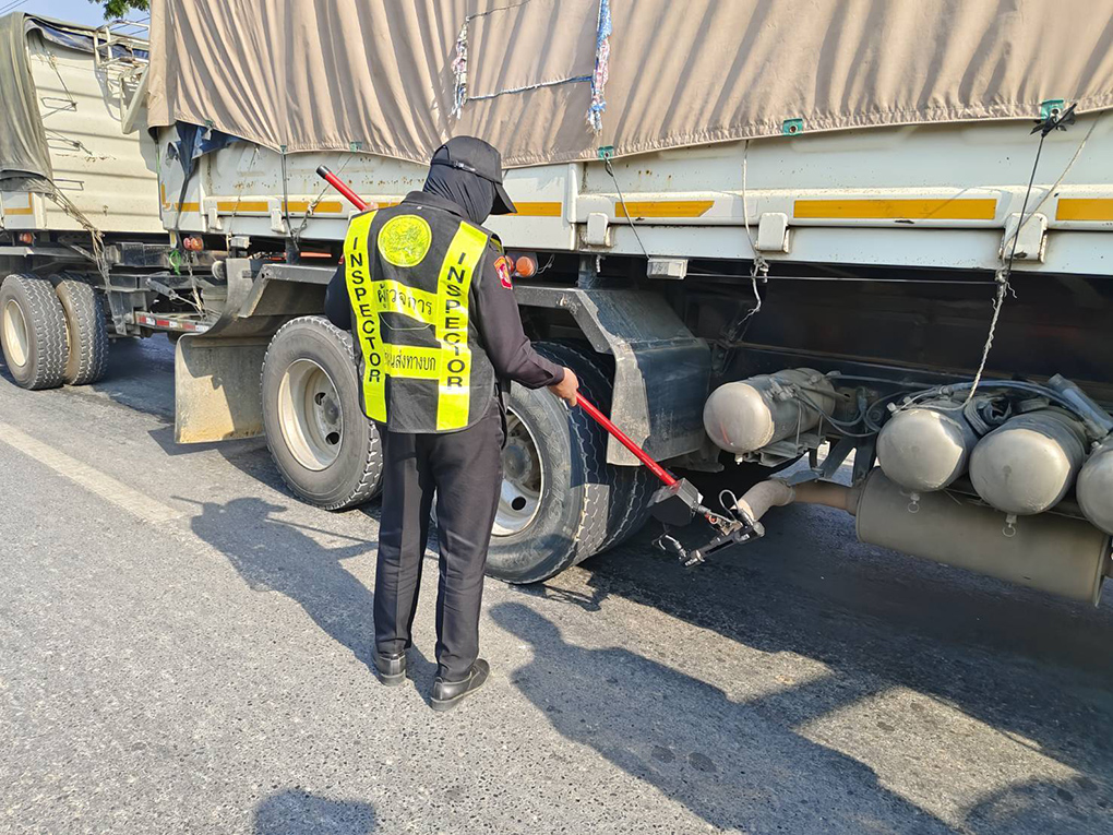 อ่างทอง ตรวจสอบรถบรรทุกขนทรายและตรวจควันดำรถยนต์ เพื่อป้องกันและลดผลกระทบตามมาตรการป้องกันปัญหาฝุ่นละออง PM 2.5
