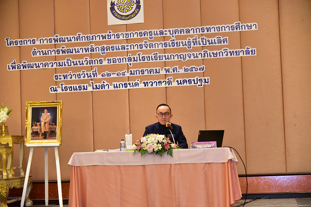 นายกิติศักดิ์ นิโรจน์ ผู้อำนวยการโรงเรียนกาญจนาภิเษกวิทยาลัย อุทัยธานี ประธานกลุ่มโรงเรียนกาญจนาภิเษกวิทยาลัย ในนามคณะกรรมการจัดกิจกรรม กล่าวว่า สำนักงานคณะกรรมการศึกษาขั้นพื้นฐานได้จัดสรรงบประมาณ งบดำเนินงาน ประจำปีงบประมาณ 2567 ให้กับกลุ่มโรงเรียนกาญจนาภิเษกวิทยาลัย เพื่อดำเนินการตามโครงการยกระดับและส่งเสริมความเป็นเลิศด้านวิทยาศาสตร์ คณิตศาสตร์ และเทคโนโลยี ในการนี้กลุ่มโรงเรียนกาญจนาภิเษกวิทยาลัย จึงได้ตระหนักถึงความสำคัญในการส่งเสริมพัฒนาศักยภาพผู้เรียนสู่การเป็นโรงเรียนนวัตกรเชิงชีววิถีให้รักและเห็นคุณค่าของธรรมชาติ สิ่งแวดล้อม สิ่งมีชีวิตและ วัฒนธรรมในท้องถิ่น ออกแบบสร้างสรรค์นวัตกรรมเพื่อแก้ปัญหา ดูแลตนเอง สังคมและโลกได้อย่างสร้างสรรค์ ต่อยอดไปสู่การสร้างนวัตกรรมความรู้ในการพัฒนาคุณภาพผู้เรียนนั้น มีความจำเป็นอย่างยิ่งที่ต้องพัฒนาศักยภาพของข้าราชการครู และบุคลากรทางการศึกษา ซึ่งเป็นกลไกสำคัญในการขับเคลื่อนคุณภาพการศึกษาให้เกิด ประสิทธิผลอย่างเป็นรูปธรรม จึงได้จัดให้มีกิจกรรมการประชุมเชิงปฏิบัติการนี้ขึ้นมา