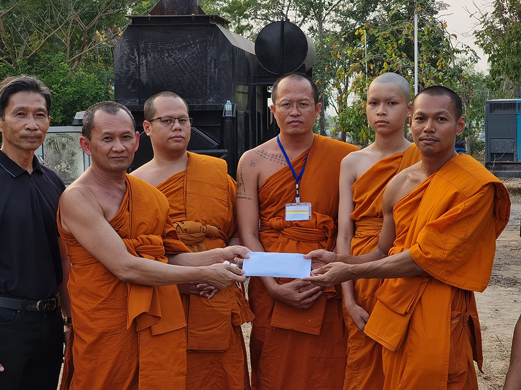 เป็นตัวแทนมอบเงินในโครงการปันน้ำใจช่วยเหลือผู้ประสบภัย จากเหตุการณ์โรงงานผลิตพลุระเบิด ของผู้มีจิตศรัทธาที่ร่วมบริจาคเเละ คณะสงฆ์ธรรมยุตจังหวัดสุพรรณบุรี