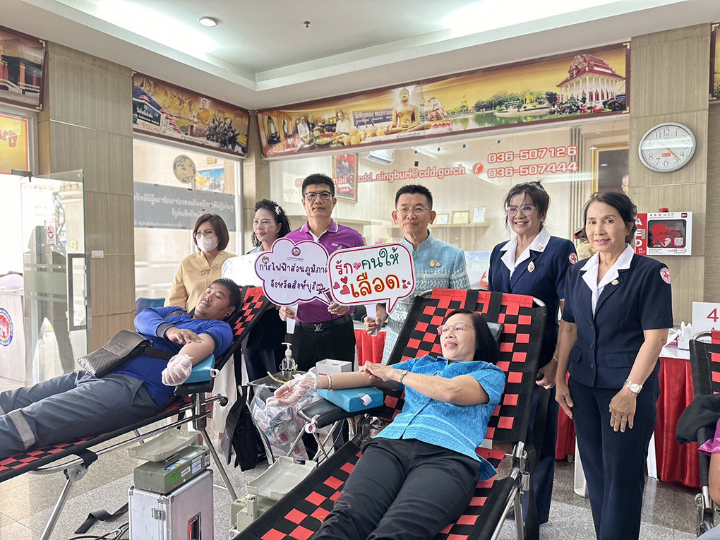 ทั้งนี้ นายสุเมธ ธีรนิติ ผู้ว่าราชการจังหวัดสิงห์บุรี นายปรีชา ดิลกพรเมธี รองผู้ว่าราชการจังหวัดสิงห์บุรี ได้เยี่ยมเยียน และให้กำลังแก่ผู้มาบริจาคโลหิต และนายนพดล มะจะกรณ์ ผู้จัดการการไฟฟ้าส่วนภูมิภาคจังหวัดสิงห์บุรี ได้นำคณะพนักงานมาร่วมสมทบบริจาคโลหิต พร้อมนำของที่ระลึกมามอบให้กับผู้บริจาคโลหิตทุกราย