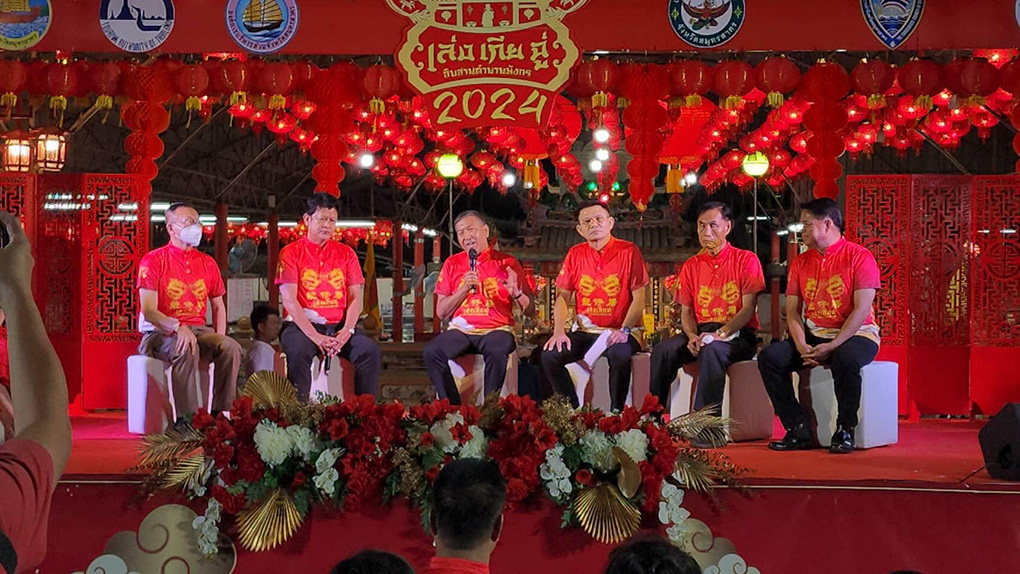 ที่บริเวณริมเขื่อนศาลเจ้าพ่อหลักเมืองสมุทรสาคร นายวรณัฎฐ์ หนูรอต รองผู้ว่าราชการจังหวัดสมุทรสาคร พร้อมด้วย นายชัยวัฒน์ ตุนทกิจ รองผู้ว่าราชการจังหวัด นายจอม หงษ์เวียงจันทร์ รองนายกองค์การบริหารส่วนจังหวัดสมุทรสาคร, นายชุมพล จันทร์จรัสวัฒนา นายกเทศมนตรีเทศบาลนครสมุทรสาคร, นายกําจร มงคลตรีลักษณ์ ประธานคณะกรรมการบริหารศาลเจ้าพ่อหลักเมืองสมุทรสาคร, พ.ต.อ.วรพล ยิ่งเจริญ รอง ผบก.ภ.จว.สมุทรสาคร และนายปราโมทย์ ชาวเมืองโขง วัฒนธรรมจังหวัดสมุทรสาคร ร่วมแถลงข่าวการจัดงานสืบสานประเพณีวัฒนธรรมไทย-จีน “ตรุษจีน เล่ง เกีย ฉู่ สืบสานตำนานมังกร 2567” โดยมีส่วนราชการ ภาคเอกชน ลูกหลานชาวไทยเชื้อสายจีนในสมุทรสาคร และสื่อมวลชน เข้าร่วมงาน