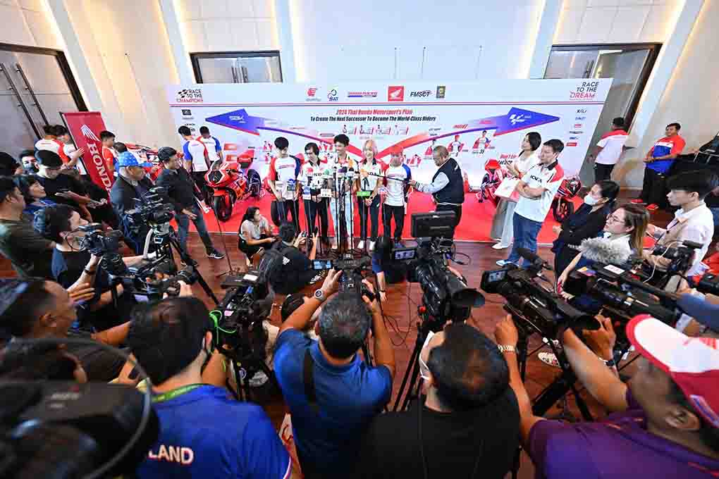 “ไทยฮอนด้า” ผู้นำวงการมอเตอร์สปอร์ตไทย ประกาศแผนมอเตอร์สปอร์ตปี 2024 ยกระดับนักบิดไทยภายใต้โครงการ “ฮอนด้า เรซ ทู เดอะ ดรีม” สู่ระดับโลกอย่างต่อเนื่อง ส่ง “ก้อง” สมเกียรติ จันทรา ลุยศึกชิงแชมป์โลกรุ่นโมโตทู ต่อเนื่องเป็นปีที่ 6 ด้วยเป้าหมายสุดท้าทายในการจบอันดับท็อปทรี พร้อมดัน “ก๊องส์” ธัชกร บัวศรี อีกหนึ่งนักบิดฝีมือดี ลงแข่งขันโมโตทรี แบบเต็มฤดูกาลเป็นครั้งแรก เช่นเดียวกับการผลักดันนักแข่งดาวรุ่งอย่าง “ข้าวกล้อง” จักรีภัทร พฤฒิสาร ลุยศึกเยาวชนชิงแชมป์โลก รายการ “เอฟไอเอ็ม จูเนียร์จีพี เวิลด์ แชมเปี้ยนชิพ” และ รายการ “เรดบูล โมโตจีพี รุกกีส์ คัพ” เพื่อสร้างนักแข่งรุ่นใหม่สู่การเป็นนักแข่งระดับโลกในรุ่นต่อไป ภายใต้แนวคิด “The Next Successor To Become The World Class Riders”