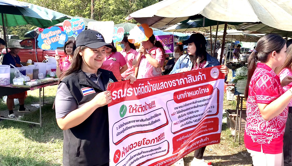 วันที่ 7 ก.พ. 67 ผู้สื่อข่าวรายงานว่า นายบังเอิญ พึ่งโพธิ์ทอง นายกอบต.อ่างทอง อำเภอทับสะแก จังหวัดประจวบคีรีขันธ์ ได้สั่งการให้ นายธานินธ์ บุญนี ปลัดอบต.อ่างทอง น.ส.ภัณฑ์ธิมา รังสิกุล รองปลัด อบต.อ่างทอง น.ส.ทิพวรรณ ปัญญาหาญ หัวหน้าสำนักปลัด นายอภินัทธ์ นิลสุข นักวิชาการสาธารณสุข รักษาการแทน ผอ.กองสาธารณสุขและสิ่งแวดล้อม พร้อม ข้าราชการ พนักงาน อบต.อ่างทอง ร่วมกิจกรรมรณรงค์ตลาดนัดท้องถิ่นสีเขียว (Green maket) เพื่อส่งเสริมเศรษฐกิจฐานราก การผลิต การตลาด การจำหน่าย และการสร้างรายได้แก่ชุมชน