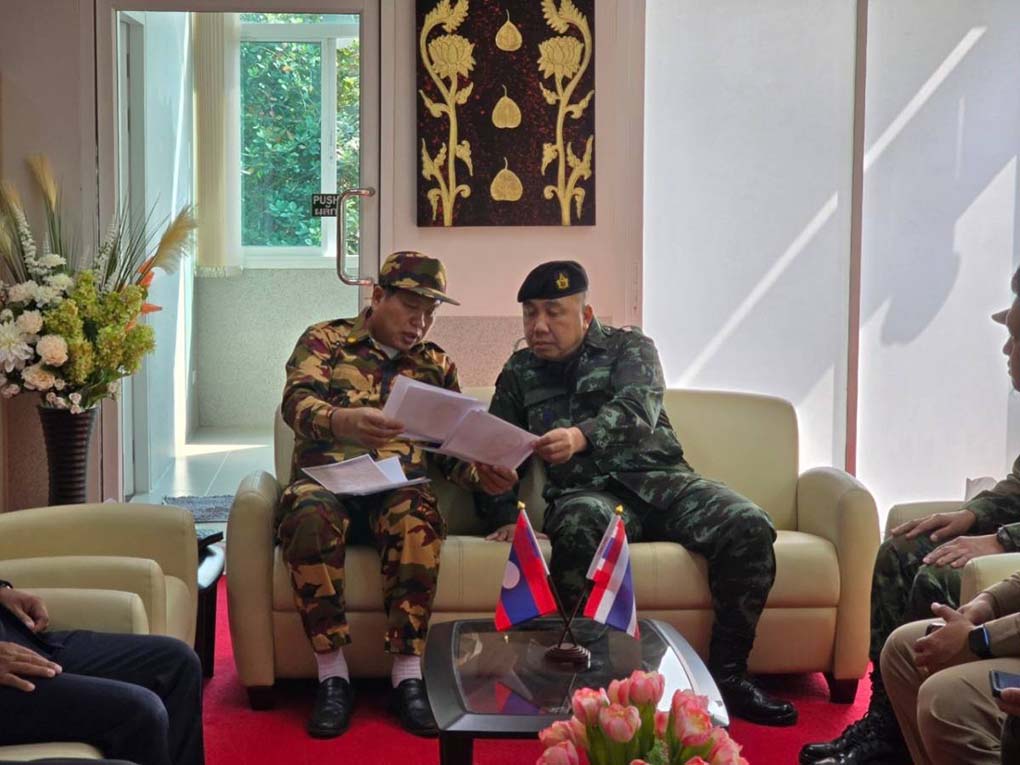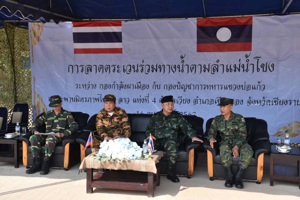 กองกำลังผาเมือง ร่วมกับ กองบัญชาการทหาร แขวงบ่อแก้ว จัดการลาดตระเวนร่วมตามลำแม่น้ำโขง ณ สะพานมิตรภาพไทย – ลาว แห่งที่ 4 ตำบลเวียง อำเภอเชียงของ จังหวัดเชียงราย