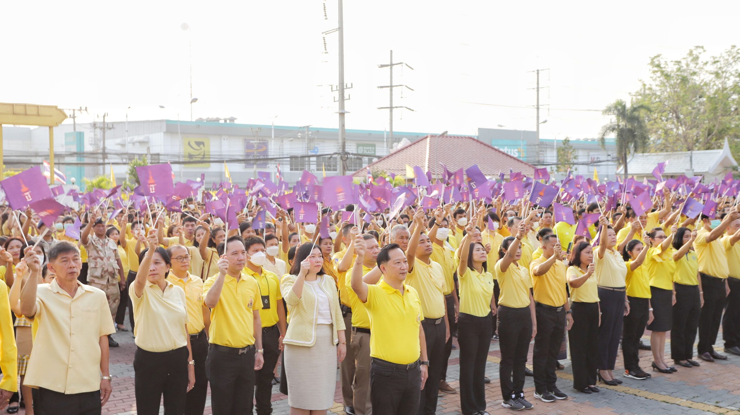 โดยผู้ว่าราชการจังหวัดปทุมธานี ทำพิธีเปิดกรวยกระทงดอกไม้ ถวายธูปเทียนแพ ถวายแจกันดอกไม้ เบื้องหน้าพระฉายาลักษณ์สมเด็จพระกนิษฐาธิราชเจ้า กรมสมเด็จพระเทพรัตนราชสุดาฯ สยามบรมราชกุมารี พร้อมกล่าวแถลงการณ์น้อมแสดงความจงรักภักดี จากนั้นผู้เข้าร่วมกิจกรรมทุกคนร่วมกันร้องเพลงสรรเสริญพระบารมี และเปล่งเสียง ทรงพระเจริญ ดังกึกก้องไปทั่วบริเวณ พร้อมโบกธงสีม่วง แสดงถึงความจงรักภักดี และซาบซึ้งในพระมหากรุณาธิคุณ ที่ทรงมีต่อพสกนิกรชาวไทยทุกหมู่เหล่าเสมอมา