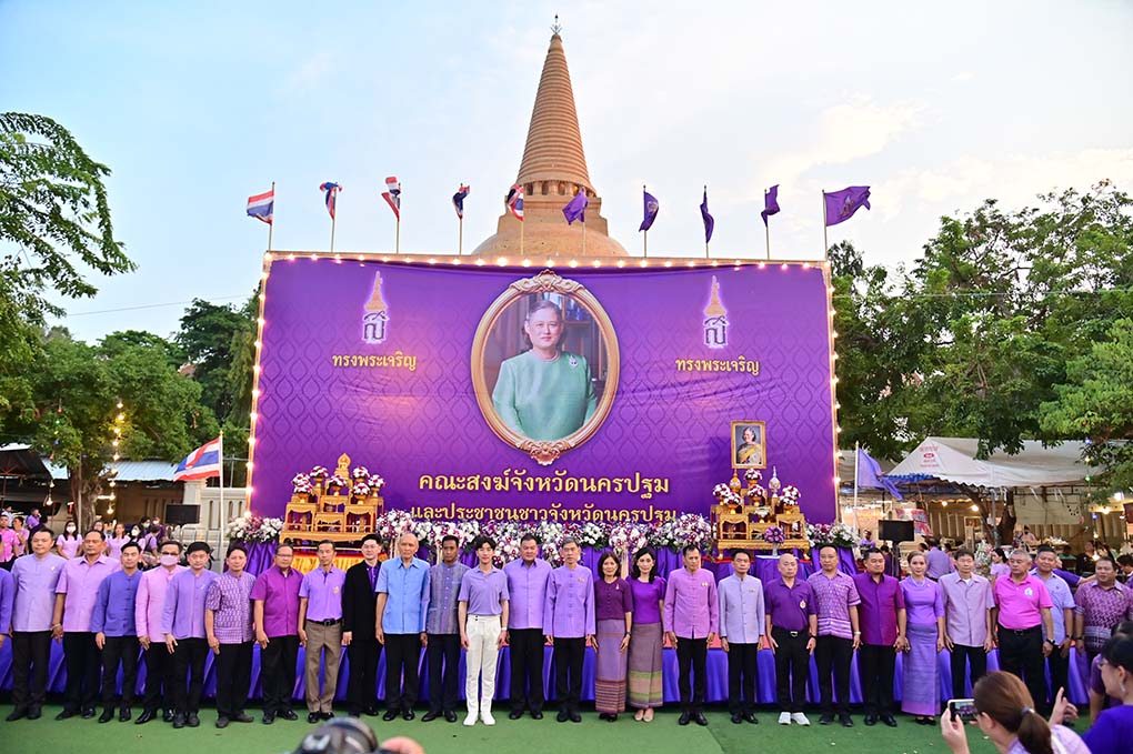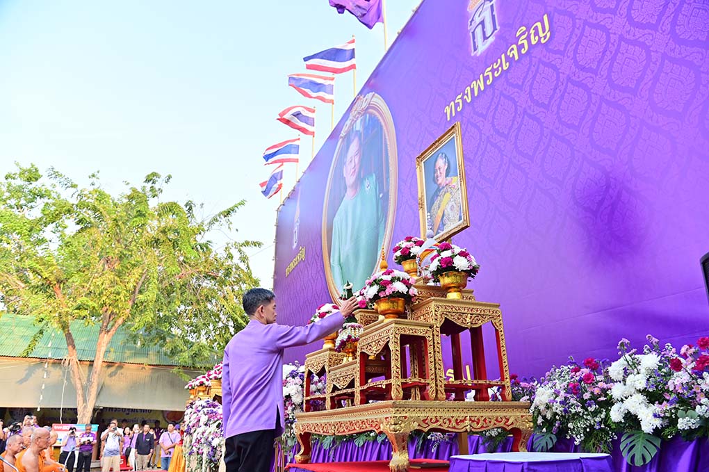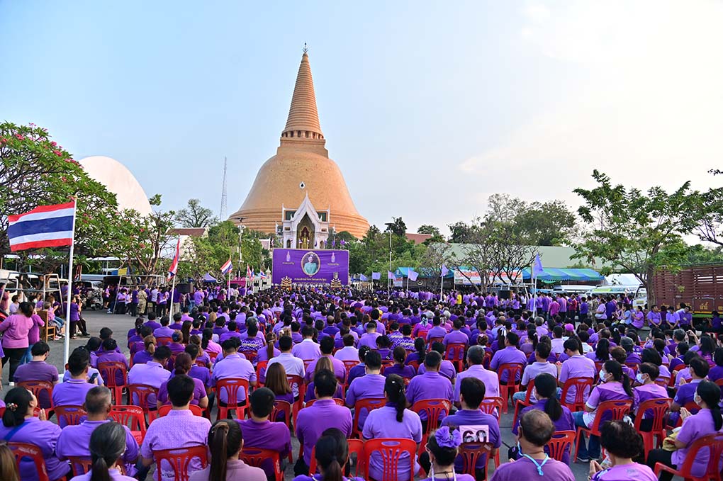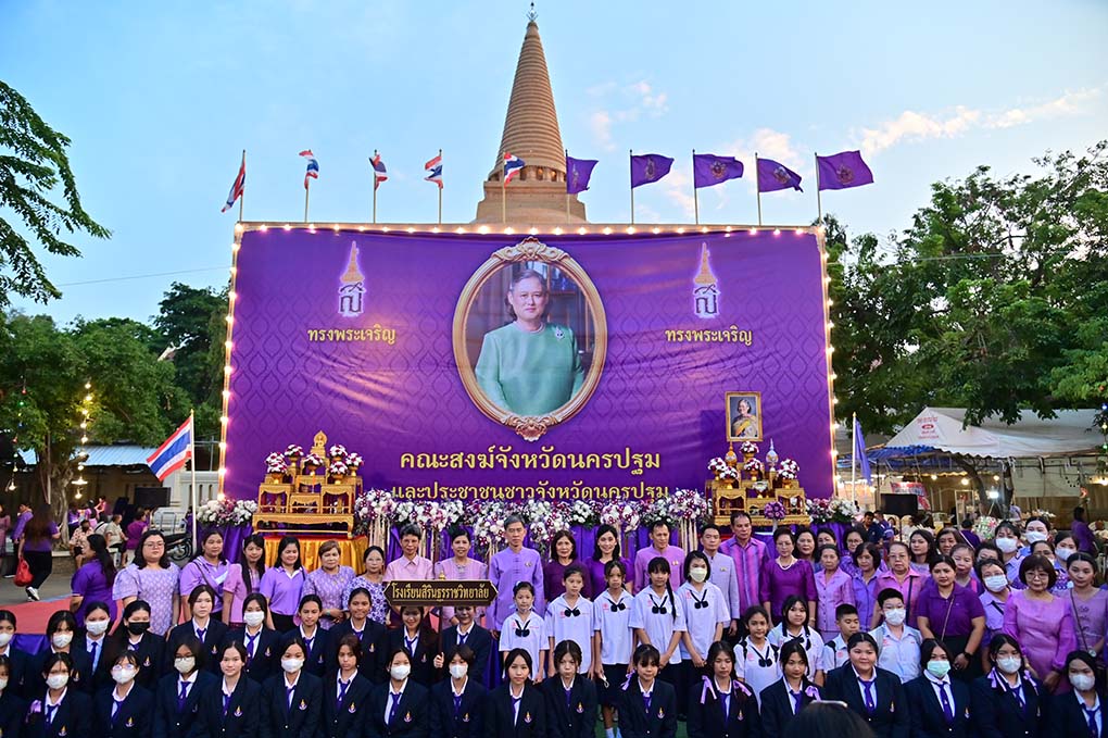 จากนั้น ผู้ว่าราชการจังหวัดนครปฐม ถวายแจกันดอกไม้ หน้าพระฉายาลักษณ์สมเด็จพระกนิษฐาธิราชเจ้า กรมสมเด็จพระเทพรัตนราชสุดาฯ สยามบรมราชกุมารี พร้อมกล่าวสำนึกในพระมหากรุณาธิคุณ ที่ตลอดระยะเวลาที่ผ่านมา พระองค์ทรงตรากตรำพระวรกาย ปฏิบัติบำเพ็ญพระราชกรณียกิจน้อยใหญ่ ด้วยพระวิริยะ อุสาหะ เป็นที่ประจักษ์แก่พสกนิกรโดยทั่วไป ก่อเกิดประโยชน์แก่ประเทศชาติและประชาชนเป็นอเนกอนันต์ โดยเฉพาะในจังหวัดนครปฐม ทรงเป็นองค์อุปถัมภ์โรงเรียนสิรินธรราชวิทยาลัย และโรงเรียนอนุบาลผไทวิทยา (มูลนิธิชัยพัฒนา) อีกทั้งทรงสนับสนุนอนุรักษ์สืบทอดเผยแพร่ความรู้ด้านศิลปวัฒนธรรมไทย กระทั่งได้รับการถวายพระสมัญญาเอกอัครราชูปถัมภก มรดกวัฒนธรรมไทย ทั้งทรงจัดตั้งโครงการตามพระราชดำริเป็นจำนวนมาก ทั้งด้านการศึกษา การอนุรักษ์ทรัพยากรธรรมชาติและสิ่งแวดล้อม การส่งเสริมสุขอนามัยและการสาธารณสุข และในครั้งการเสด็จพระราชดำเนินไปทอดพระเนตรการพัฒนาด้านต่างๆ ทรงจดบันทึก และบันทึกภาพเพื่อนำความรู้และประสบการณ์ที่ได้รับมาถอดบทเรียน และพระราชทานแนวทางแก่องค์กร หน่วยงาน ในการพัฒนากระบวนงานเพื่อสร้างความเจริญมั่นคงให้กับประเทศชาติอย่างยั่งยืน