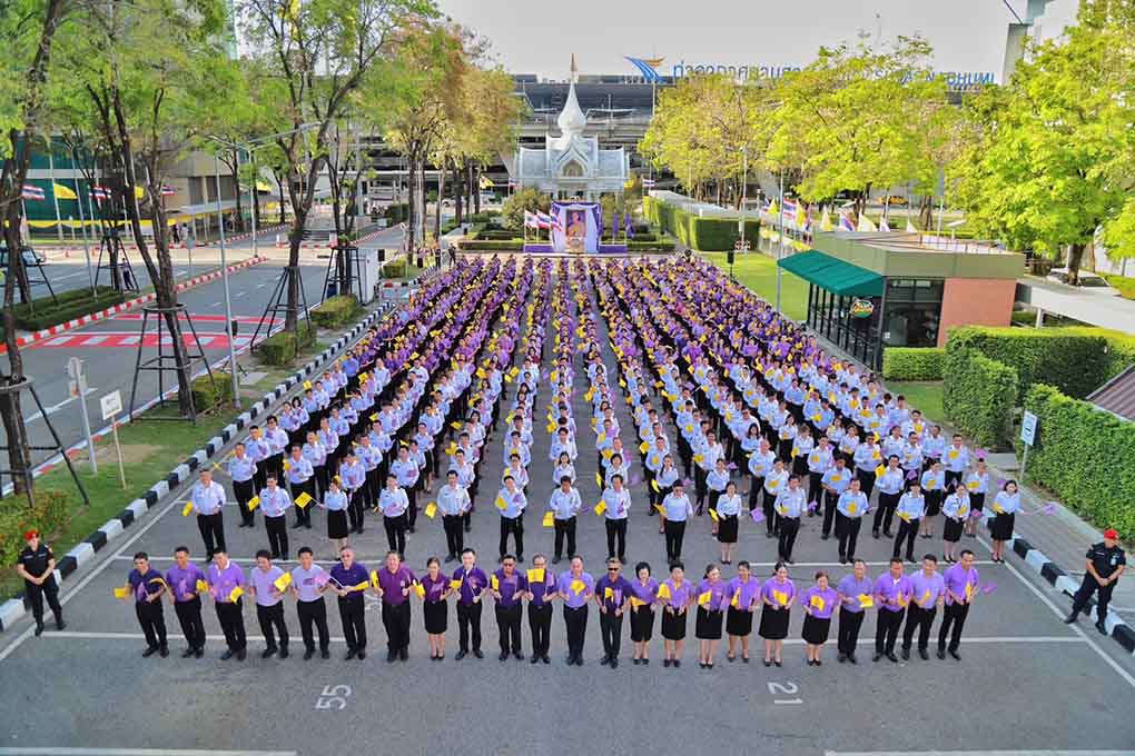 โดยมีคณะผู้บริหารและพนักงานท่าอากาศยานสุวรรณภูมิ (ทสภ.) พร้อมใจกันแต่งกายเสื้อโทนสีม่วงเข้าร่วมในพิธีฯ เพื่อเป็นการร่วมแสดงพลังแห่งความจงรักภักดีและสำนึกในพระมหากรุณาธิคุณของสมเด็จพระกนิษฐาธิราชเจ้า กรมสมเด็จพระเทพรัตนราชสุดาฯ สยามบรมราชกุมารี