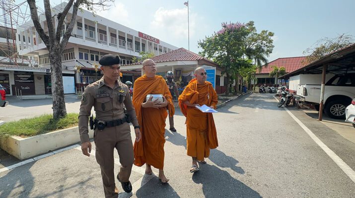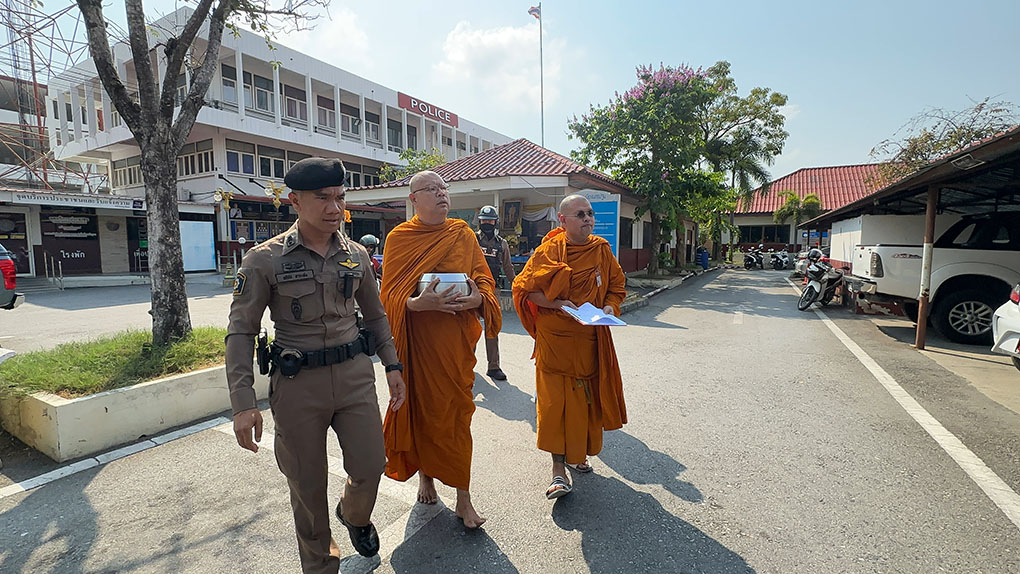 จากนั้น พระครูสังฆรักษ์พงษ์ดนัย ได้นำตัวนายสำรวย (ขอสงวนนามสกุล) อายุ 50 ปี ไปลงบันทึกประจำวันที่สถานีตำรวจภูธรเมืองนครปฐม โดย พ.ต.ต.อภิชัช อาระหัง สวป. สภ.เมืองนครปฐม ได้นำกำลังเจ้าหน้าที่สายตรวจมาเป็นพยานในการลงบันทึกประจำวันและนำตัวส่งเจ้าคณะตำบลพระปฐมเจดีย์ วัดห้วยจระเข้ เพื่อดำเนินการเก็บข้อมูลตรวจสอบหลักฐานตามขั้นตอนของคณะสงฆ์ ซึ่งได้มีการดำเนินการให้ลาสิกขา เนื่องจากผิดระเบียบในการออกมาบิณฑบาตเพราะเป็นพระใหม่ที่บวชเพียงสองปีและไม่อยู่จำวัดแต่ออกมาอาศัยอยู่บ้านเรือนของตัวเองและออกกิจนิมนต์โดยไม่ได้แจ้งให้ต้นสังกัดทราบ