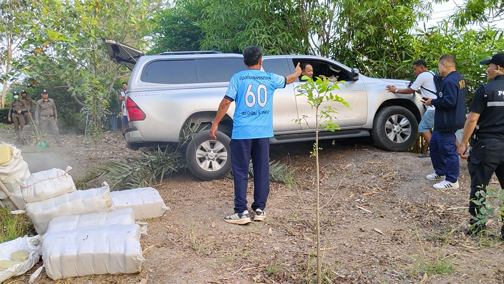 ที่จังหวัดสุพรรณบุรี เมื่อเวลาประมาณ 17.00 น. วันที่ 2 มี.ค.67 พล.ต.ต.วิทัศน์ บริรักษ์ ผบก.สกส.บช.ปส.สืบทราบว่าจะมีขบวนการลักลอบขนยาเสพติดล็อตใหญ่จากภาคอีสานเข้าสู่ภาคกลาง จึงสั่งการให้ พ.ต.อ.ไพฑูรย์ งามลาภ ผกก.1 ,พ.ต.ท.มงคล ออมทรัพย์ รอง ผกก.1 สกส.บช.ปส.นำกำลังตรวจสอบข้อมูลพบว่าจะมีการลักลอบขนยาเสพติดจริง โดยจะเข้ามาส่งในเขต จังหวัดสุพรรณบุรี จึงเฝ้าติดตามความเคลื่อนไหว ปรากฏว่าพบรถเป้าหมายเข้ามาในพื้นที่ เป็นรถโตโยต้า วีโก้ หมายเลขทะเบียน 2ฒช 1685 กทม. จึงติดตามปรากฏว่าคนร้ายไหวตัวทัน ได้ขับรถหนีไปบนถนนสาย 340 สุพรรณบุรี -ชัยนาท และไปเลี้ยวซ้ายออกเส้นเลี่ยงเมือง 357 ก่อนจะเลี้ยวเข้าถนนเส้นบ้านโพธิ์ตะวันตก เข้าทางบึงบ้านโพธิ์ และขับเลี้ยวเข้าในซอย ใกล้เคียงวัดบ้านโพธิ์ตะวันตก หมู่ 2 ต.บ้านโพธิ์ อำเภอเมืองสุพรรณบุรี คนร้ายขับเข้าไปจนมุมในพื้นที่บ้านชาวบ้าน และพุ่งชนต้นไม้ริมรั้ว ของชาวบ้านจนท้องรถติดค้างบนเนินดินไปต่อไม่ได้ คนขับรถจึงทิ้งรถวิ่งหลบหนีเข้าไปในดงมะม่วงของชาวบ้าน เจ้าหน้าที่ตำรวจจึงขอกำลังจาก ตำรวจชุด กก.สส.ภ.จว.สุพรรณบุรี โดดย พ.ต.ท.สนิทพงษ์ อินทรกำแหง สว.กสส.นำกำลังเข้าปิดล้อมพื้นที่ เพื่อติดตามจับกุมคนขับรถขนยาที่หนีไป สุดท้ายคนร้ายมีรถมารับพาหนีต่อไป ก่อนไปถูกตำรวจจับได้ที่ จังหวัดสระบุรี