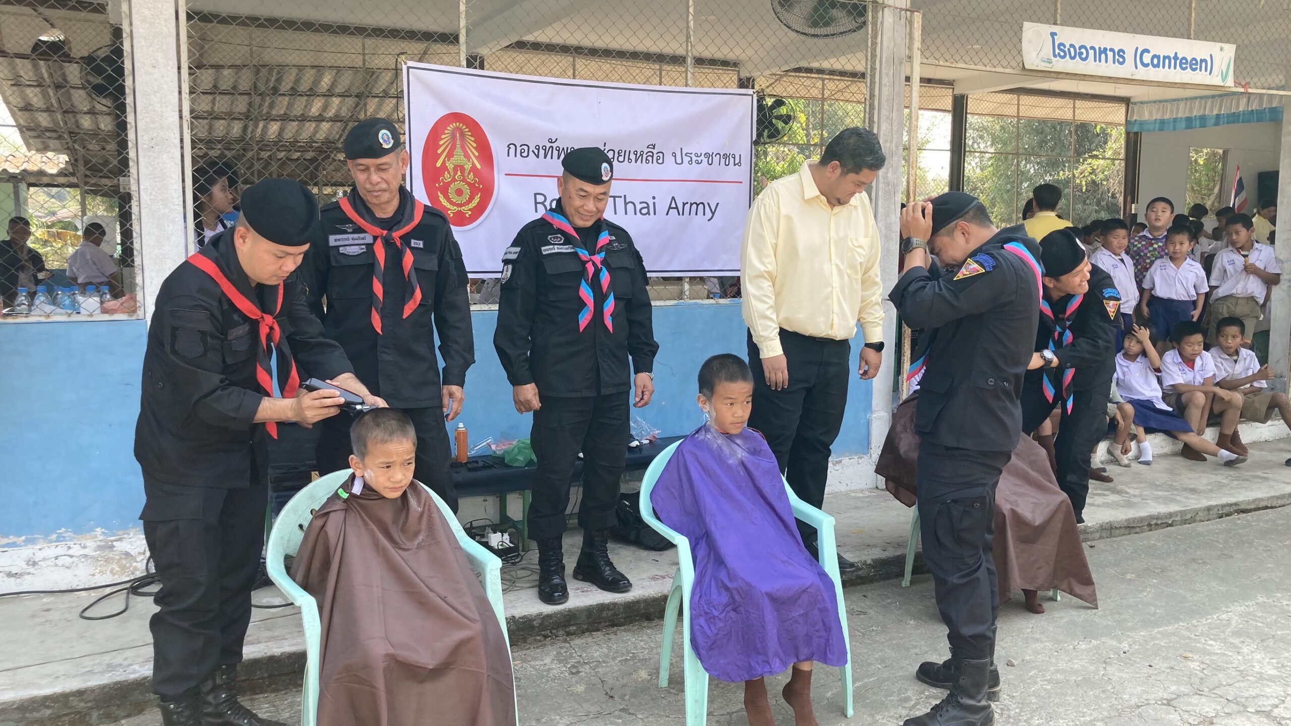ทางทหารพรานนั้น ปกติก็จะปฏิบัติการจามแนวชายแดนเพื่อป้องกันกลุ่มชนต่างด้าว และกลุ่มขบวนการค้ายาเสพติดข้ามชาติ รุกล้ำเข้ามาในประเทศไทย เพื่อมาทำการผิดกฎหมายต่างๆ ในยามที่ปกติก็จะนำทหารเข้าทำการช่วยเหลือชาวบ้านทำการซ่อมแซมบ้าน สร้างถนนหนทาง ทำแนวกันไฟป่า ที่ร่วมกับประชาชนเพื่อสร้างสิ่งที่ดีๆให้กับชุมชนสังคม ไม่มีวันเว้นวันหยุด นำสมุด อุปกรณ์การเรียน อุปกรณ์กีฬา มามอบให้นักเรียน 196 คน และคณะครูบุคลากร 9 คน พร้อมยังนำขนม ของหวาน และไอศกรีม มาเลี้ยงนักเรียนในพื้นที่ชายแดนนี้ และช่วยตัดผมนักเรียนชายอีก จำนวน 60 กว่าคน ที่ผมยาว และทางบ้านยากจนที่ไม่มีเงินจ้างช่างตัดผมได้ทางทหารพรานได้ดำเนินการตัดผมฟรีให้ในวันนี้ และยังเป็นการเข้าช่วยเหลืองานด้านต่างๆกับชาวบ้าน และทางโรงเรียน เพื่อเป็นการประชาสัมพันธ์รณรงค์ให้นักเรียน และผู้ปกครองอย่าไปยุ่งเกี่ยวกับขบวนการค้ายาเสพติด เพราะมีโทษ ทั้งจำคุก และอาจถูกเจ้าหน้าที่สังหารถ้าต่อสู้ขัดขืนและมีอาวุธเพื่อใช้ต่อสู้กับเจ้าหน้าที่ ในวันนี้เด็กๆนักเรียนและคณะครูมีความสุขมากที่ทางทหารพรานได้เข้ามาช่วยเหลือตัดผมให้นักเรียนชาย มอบขนม และอุปกรณ์การเรียน อุปกรณ์กีฬา