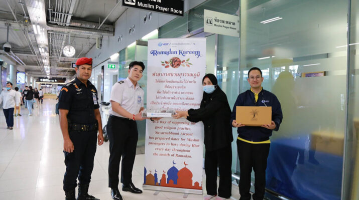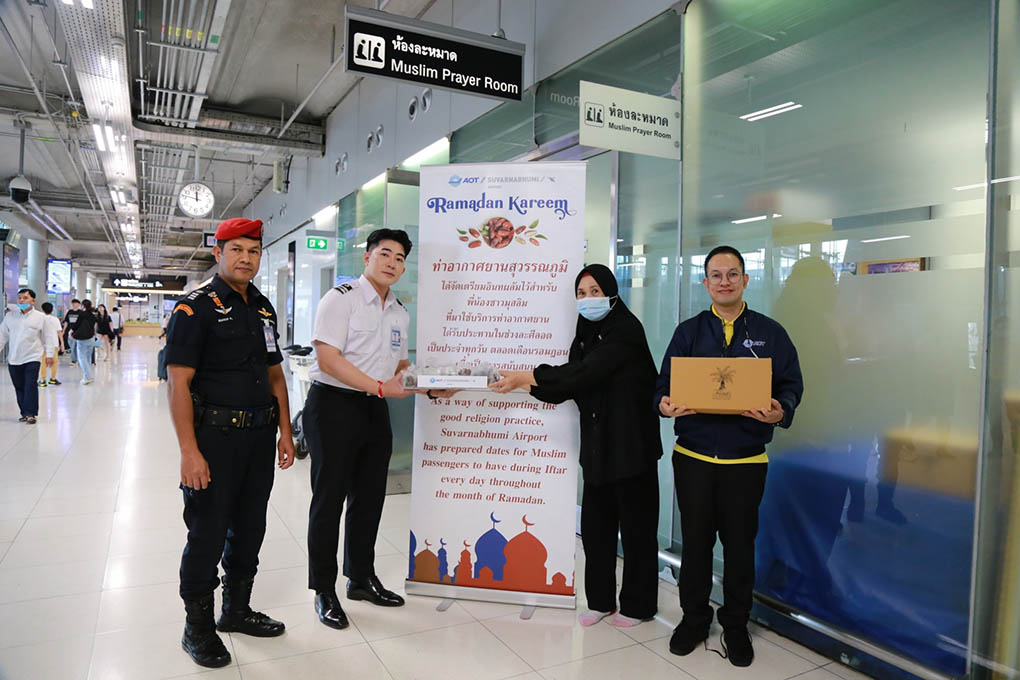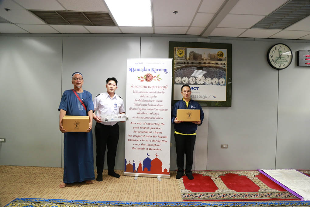 ท่าอากาศยานสุวรรณภูมิจัดเตรียมอินทผลัมไว้บริการพี่น้องชาวมุสลิมตลอดเดือนรอมฎอนที่ห้องละหมาด ชั้น 3 อาคารผู้โดยสาร พร้อมมอบอินทผลัมแก่มัสยิด 16 แห่งที่อยู่โดยรอบท่าอากาศยาน
