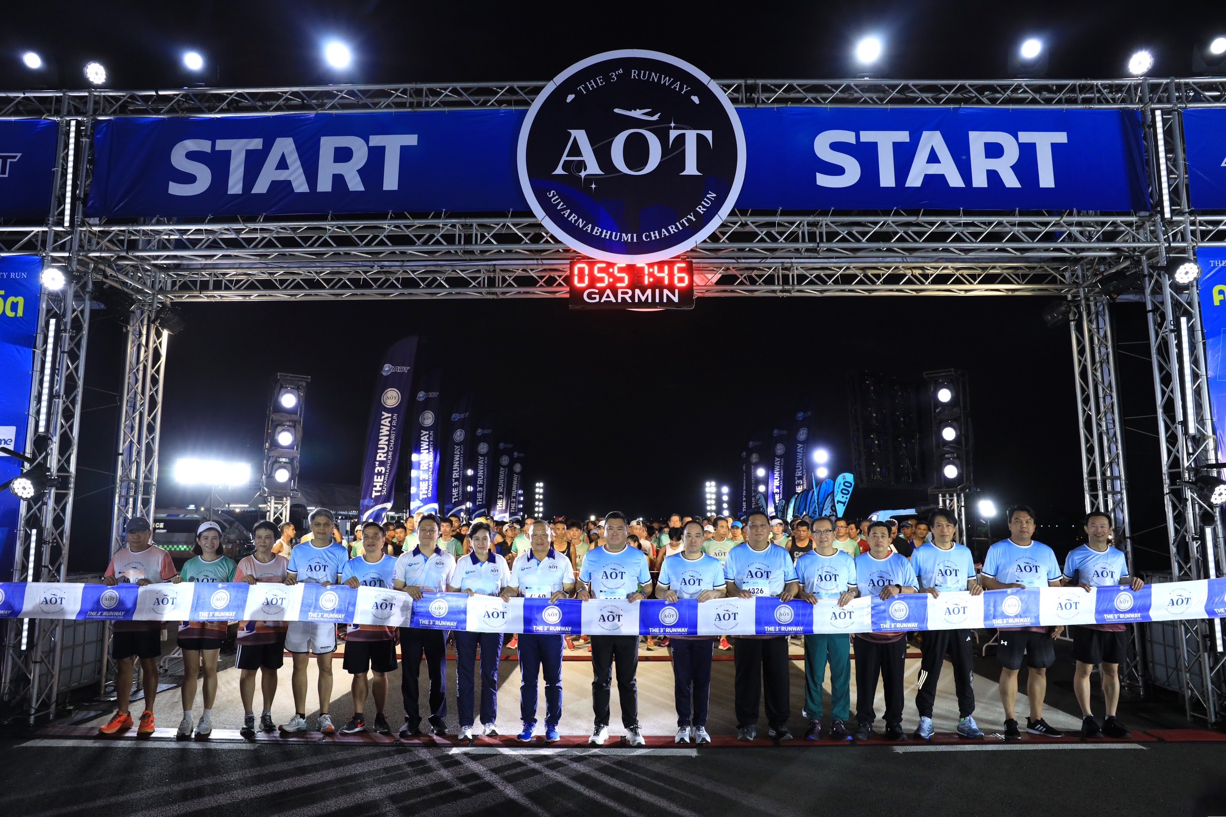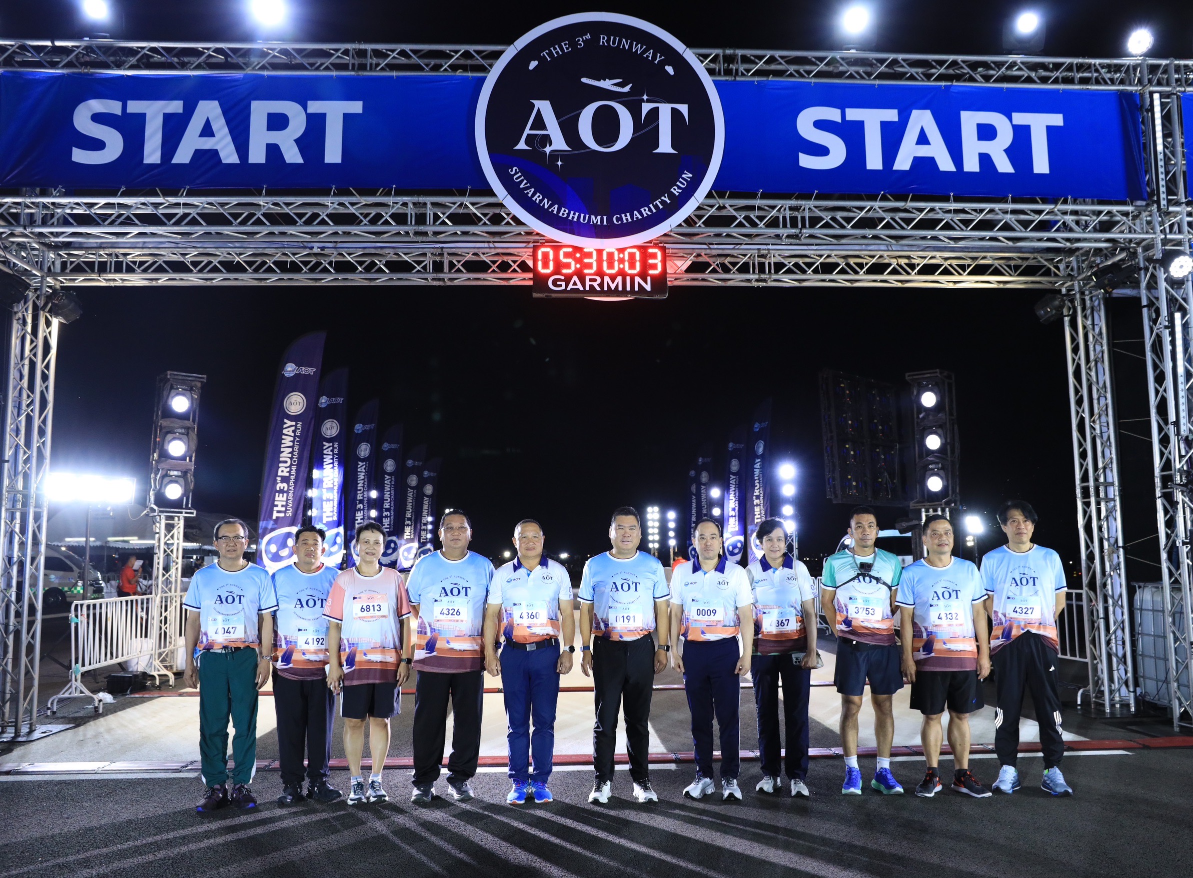 *****ดร.กีรติ กิจมานะวัฒน์ กรรมการผู้อำนวยการใหญ่ AOT กล่าวว่า AOT ขอขอบคุณพลังนักวิ่งกว่า 5,000 คน ที่มาร่วมกิจกรรมเดิน-วิ่งการกุศล “THE 3rd RUNWAY SUVARNABHUMI CHARITY RUN” รวมทั้ง บริษัท สกาย ไอซีที จำกัด (มหาชน) กลุ่มบริษัท คิง เพาเวอร์ สุวรรณภูมิ บริษัท ทิปโก้แอสฟัลท์ จำกัด (มหาชน) บริษัทปตท.จำกัด (มหาชน) บริษัท ซีต้าร์-พีเทริส จอยท์ เวนเจอร์ บริษัท การบินไทย จำกัด (มหาชน) บริษัท ยูไนเต็ด แอนนาลิตส์ แอนด์ เอ็นจิเนียริ่ง คอลซัลแตนท์ จำกัด บริษัท สกาย แปซิฟิคแอร์ เซอร์วิสเซส จำกัด บริษัท ผลิตไฟฟ้าและน้ำเย็น จำกัด บริษัท สามารถคอมมิวนิเคชั่น เซอร์วิส จำกัด บริษัท ดิเอ็กซ์เซคคิวทีฟ เลาจน์ (ไทยแลนด์) บริษัท อีวี มีพลัส จำกัด บริษัท ฟอร์ท คอร์ปอเรชั่น จำกัด (มหาชน) และบริษัท การบินกรุงเทพ จำกัด (มหาชน) ที่ร่วมสนับสนุนการจัดกิจกรรม และร่วมส่งมอบรายได้ทั้งหมดโดยไม่หักค่าใช้จ่ายกว่า 5.5 ล้านบาท เพื่อนำไปสนับสนุนการจัดซื้ออุปกรณ์ทางการแพทย์มอบให้กับโรงพยาบาลในถิ่นทุรกันดาร ซึ่งกิจกรรมครั้งนี้ถือเป็นอีกกิจกรรมหนึ่งของ AOT ที่มุ่งส่งเสริมและช่วยเหลือสังคมด้านการพัฒนาคุณภาพชีวิตของประชาชน รวมทั้งส่งเสริมให้ผู้เข้าร่วมกิจกรรมฯ มีสุขภาพที่แข็งแรงและยังได้มีโอกาสช่วยเหลือสังคมร่วมกัน พร้อมกับเปิดประสบการณ์ครั้งแรก และครั้งเดียวในชีวิตบนทางวิ่งเส้นที่ 3 ทสภ.ด้วย