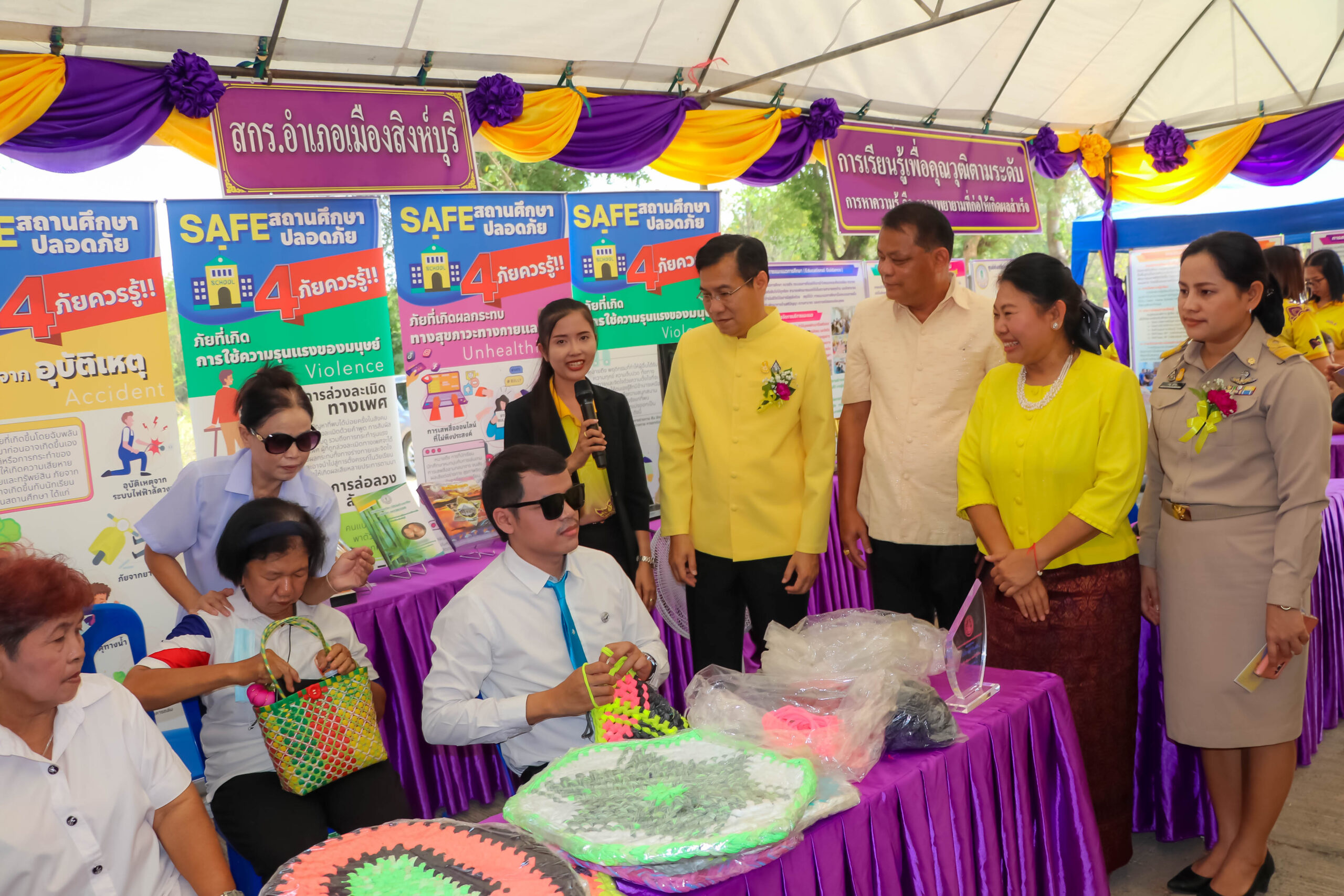 โดยได้รับความร่วมมือจากภาคีเครือข่ายสำนักงานจัดหางานจังหวัดสิงห์บุรี ในการออกบูธประชาสัมพันธ์ตำแหน่งงานว่างและแนะแนวอาชีพเพื่อการมีงานทำ ด้านการจัดการศึกษาเพื่อพัฒนาตนเอง เรียนรู้ ลองทำ นำไปใช้ นิทรรศการการบริการจัดการการจัดการศึกษาเพื่อพัฒนาอาชีพ เช่น โชว์ผลิตภัณฑ์กระเป๋าจากเส้นพลาสติก สาธิตทำซาลาเปาแฟนซี สาธิตอาชีทำฝาชี การสาธิตการทำโลชั่นจากข้าวไรซ์เบอรี่ ด้านการจัดการศึกษาเพื่อการเรียนรู้ตลอดชีวิต เช่น กิจกรรมพัฒนา กายจิต สมองสำหรับผู้สูงอายุ สูงวัยทำได้นะ สาธิตการทุบใบไม้ ดอกไม้ เพื่อสร้างลวดลายบนถุงผ้า และด้านการจัดการศึกษาเพื่อพัฒนาคุณวุฒิตามระดับ เช่น นิทรรศการ การจัดการศึกษาสำหรับคนพิการ นิทรรศการการสร้างโอกาสความเสมอภาคทางการศึกษาอย่างทั่วถึงทุกช่วงวัย