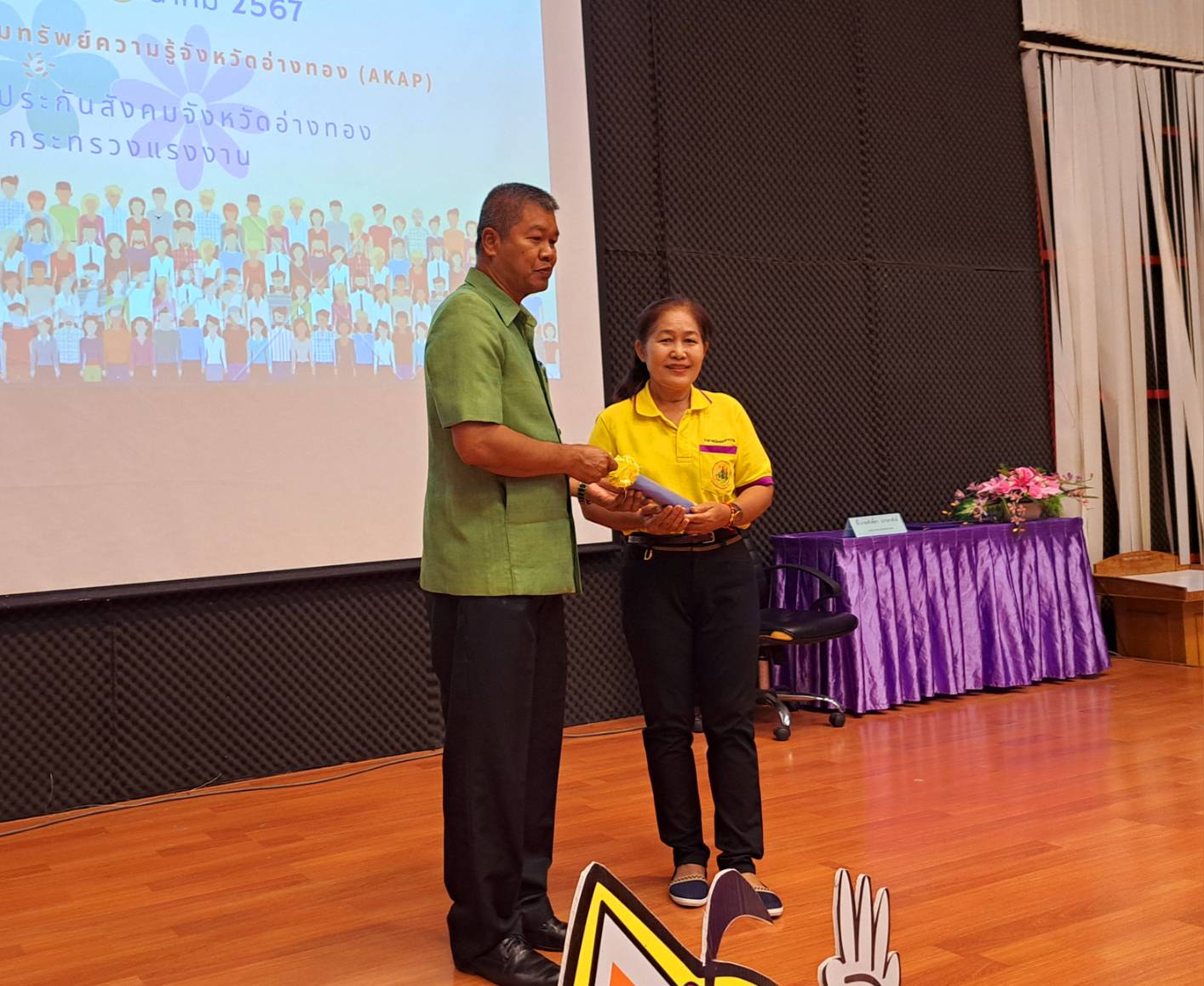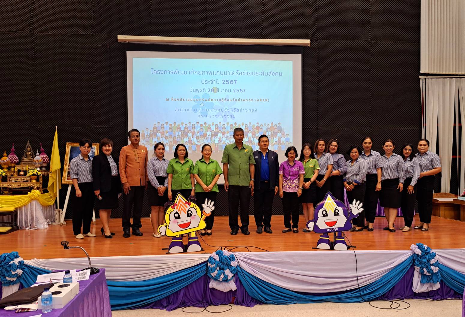 วันที่ 20 มีนาคม 2567 เวลา 08.30 น. ณ ห้องประชุมขุมทรัพย์ความรู้จังหวัดอ่างทอง (AKAP) ต.ย่านซื่อ อ.เมืองอ่างทอง จ.อ่างทอง นายพิริยะ ฉันทดิลก ผู้ว่าราชการจังหวัดอ่างทอง มอบหมายให้ นายศักดิ์ดา บรรดาศักดิ์ รองผู้ว่าราชการจังหวัดอ่างทอง เป็นประธานในพิธีเปิดโครงการพัฒนาศักยภาพแกนนำเครือข่ายประกันสังคม ประจำปี 2567 พร้อมทั้งหัวหน้าส่วนราชการสังกัดกระทรวงแรงงาน พร้อมทั้งกลุ่มเป้าหมาย ประกอบด้วยเครือข่ายประกันสังคมจังหวัดอ่างทอง อาสาสมัครแรงงาน ผู้นำชุมชน เจ้าหน้าที่สำนักงานประกันสังคม วิทยากรและผู้สังเกตการณ์ จำนวน 100 คน ร่วมพิธีเปิดและเข้าร่วมโครงการฯ โดยมีนายเสกสรร สังขวิสุทธิ์ ประกันสังคมจังหวัดอ่างทอง กล่าวรายงานต่อท่านประธานในพิธีเปิดโครงการฯ