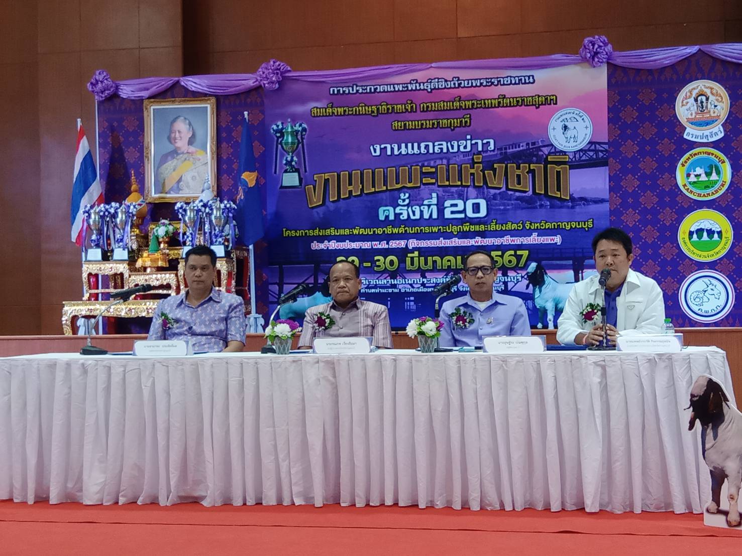 กาญจนบุรี แถลงข่าวประกวดแพะชิงถ้วยพระราชทานสมเด็จพระกนิษฐาเจ้าฯ.โครงการส่งเสริมและพัฒนาอาชีพด้านการเพาะปลูกพืชและเลี้ยงสัตว์จังหวัดกาญจนบุรีประจำปีงบประมาณ 2567 (กิจกรรมส่งเสริมและพัฒนาอาชีพการเลี้ยงแพะ) และงานแพะแห่งชาติ ครั้งที่ 20