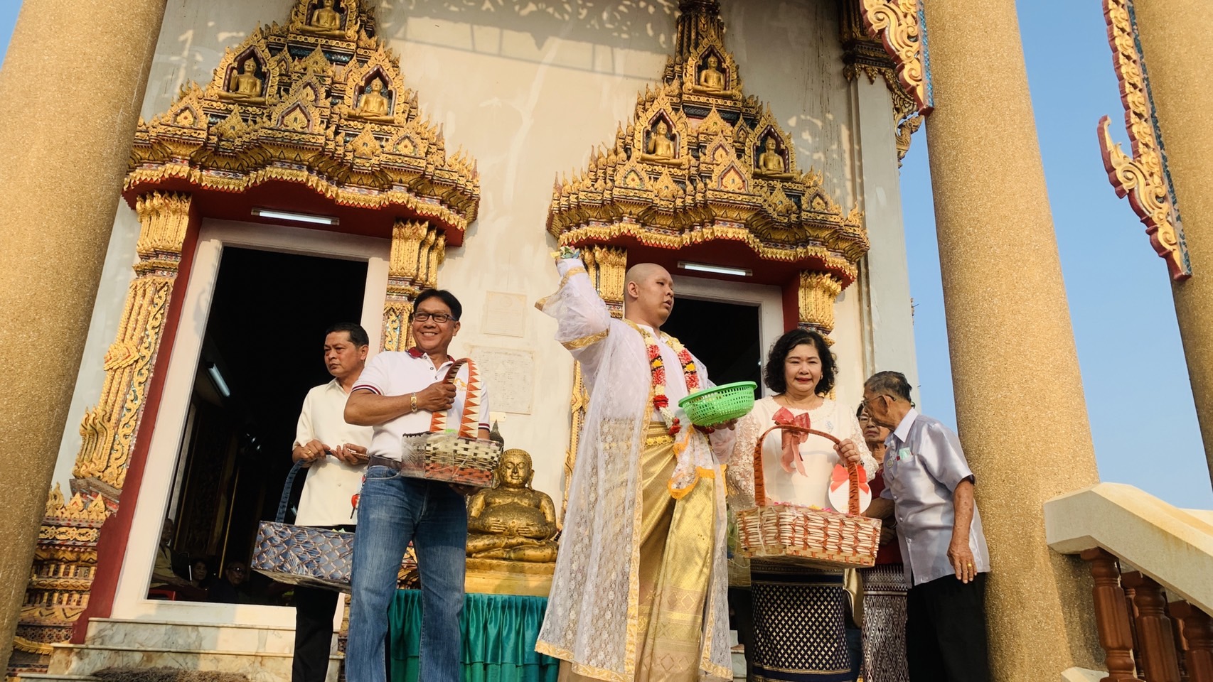 นาย ฉัตรชัย นางสาววรปรีย์ญา กล่าวว่า วันนี้ ตนทั้งสอง ดีใจมากที่ได้ จัดงานอุปสมบทบุตรชาย จึงจัดทำเหรียญ เพื่อให้ เพื่อพ่อนาค โปรยทาน จำนวน 5 ตระกร้าใหญ่ กว่า 3000 ชิ้น และดีใจมากกว่านั้นที่ได้เห็นญาติมิตร มาร่วมขบวนแห่ นาค และร่วมพิธี อุปสมบท กันมากมาย ตนทั้งสองคนขอ อนุโมทนา แบ่งบุญกุศล ในครั้งนี้ให้แก่ทุกท่าน ที่ มาร่วมงานในครั้งนี้ด้วยใจ และขอขอบคุณ นาย โฆษิต ขาวสำอางค์ รอง นายก เทศบาลตำบล สามพราน ที่ให้เกียรติมาร่วมงาน อุปสมบทในครั้งนี้