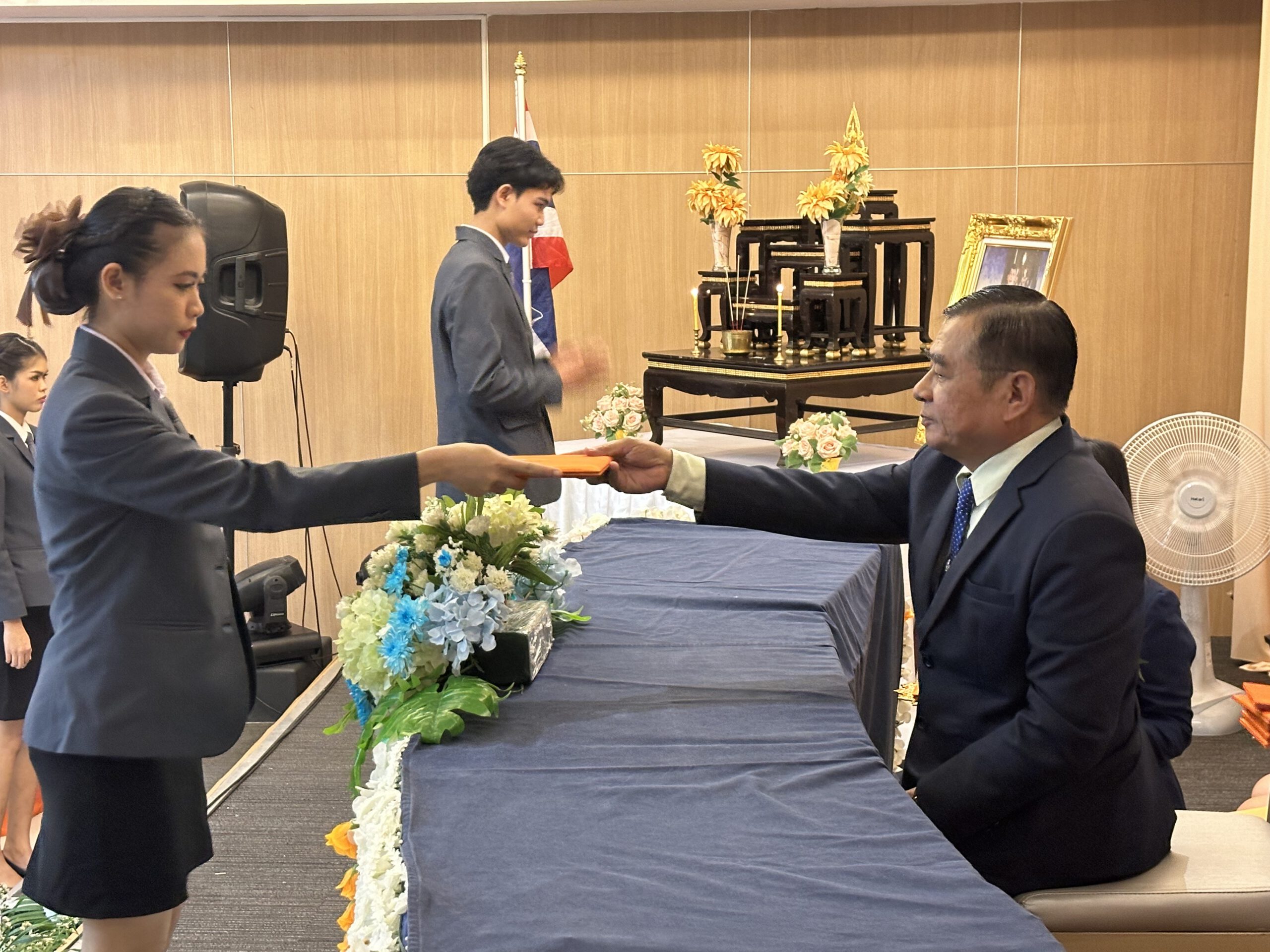 จากนั้น ผู้แทนผู้สำเร็จการศึกษากล่าวนำปฎิญาณตน แล้วประธานให้โอวาท แสดงความยินดีและชื่นชมศูนย์การเรียนปัญญาภิวัฒน์ที่ดำเนินการจัดการเรียนการสอนระบบทวิภาคี ซึ่งสอดคล้องกับนโยบายภาครัฐในการใช้ทรัพยากรจากทุกภาคส่วน นำมาพัฒนาและบูรณาการจัดการเรียนการสอนให้เกิดประโยชน์กับผู้เรียน และได้รับประสบการณ์ตรงจากการฝึกปฎิบัติงานมากที่สุด ผู้สำเร็จการศึกษาอาชีวศึกษาระดับประกาศนียบัตรจะเป็นกำลังสำคัญที่ตอบสนองความต้องการของสถานประกอบการ จึงขอให้ทุกคนได้ยึดมั่นในคำปฎิญาณตน เพื่อจะได้สร้างประโยชน์ให้กับตนเอง ประเทศชาติ และองค์กรต่อไป.
