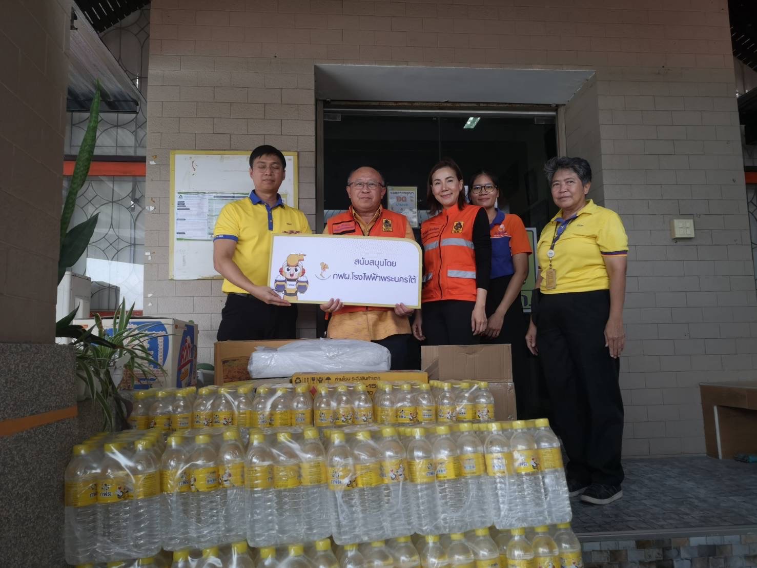 วันที่ 4-5 เมษายน 2567 โรงไฟฟ้าพระนครใต้ โดยนายนพพล พันธ์เงิน ผู้อำนวยการโรงไฟฟ้าพระนครใต้ นายนิติ ปัทมาคมสัน ผู้ช่วยผู้อำนวยการโรงไฟฟ้าพระนครใต้ 1 และแผนประชาสัมพันธ์และชุมชนสัมพันธ์โรงไฟฟ้าพระนครใต้ ลงพื้นที่สนับสนุนเครื่องบริโภค อาทิ เครื่องดื่มชูกำลัง เครื่องดื่มเกลือแร่ น้ำดื่ม อาหารกึ่งสำเร็จรูป กาแฟ และเครื่องดื่มช็อคโกแลต ให้กับหน่วยงานในพื้นที่จังหวัดสมุทรปราการ และรอบโรงไฟฟ้าพระนครใต้ ได้แก่ อำเภอเมืองจังหวัดสมุทรปราการ ,สำนักงานป้องกันและบรรเทาสาธารณภัยจังหวัดสมุทรปราการ ,อำเภอพระสมุทรเจดีย์ ,องค์การบริหารส่วนตำบลบางโปรง ,หน่วยงานราชการส่วนท้องที่ตำบลบางโปรง ,ตำบลบางด้วน ,ตำบลางหัวเสือ และตำบลบางหญ้าแพรก โดยมีนายวัฒนา เจริญจิต นายอำเภอเมืองสมุทรปราการ ,นายโชติพงศ์ เปล่งวิทยา นายอำเภอพระสมุทรเจดีย์ ,นายพชร ศศิชาชยามร หัวหน้าสำนักงานป้องกันและบรรเทาสาธารณภัยจังหวัดสมุทรปราการ ,ผู้แทนองค์การบริหารส่วนตำบลบางโปรง และผู้แทนจากตำบลบางโปรง ตำบลบางด้วน และตำบลบางหญ้าแพรก เป็นผู้รับมอบตามลำดับ