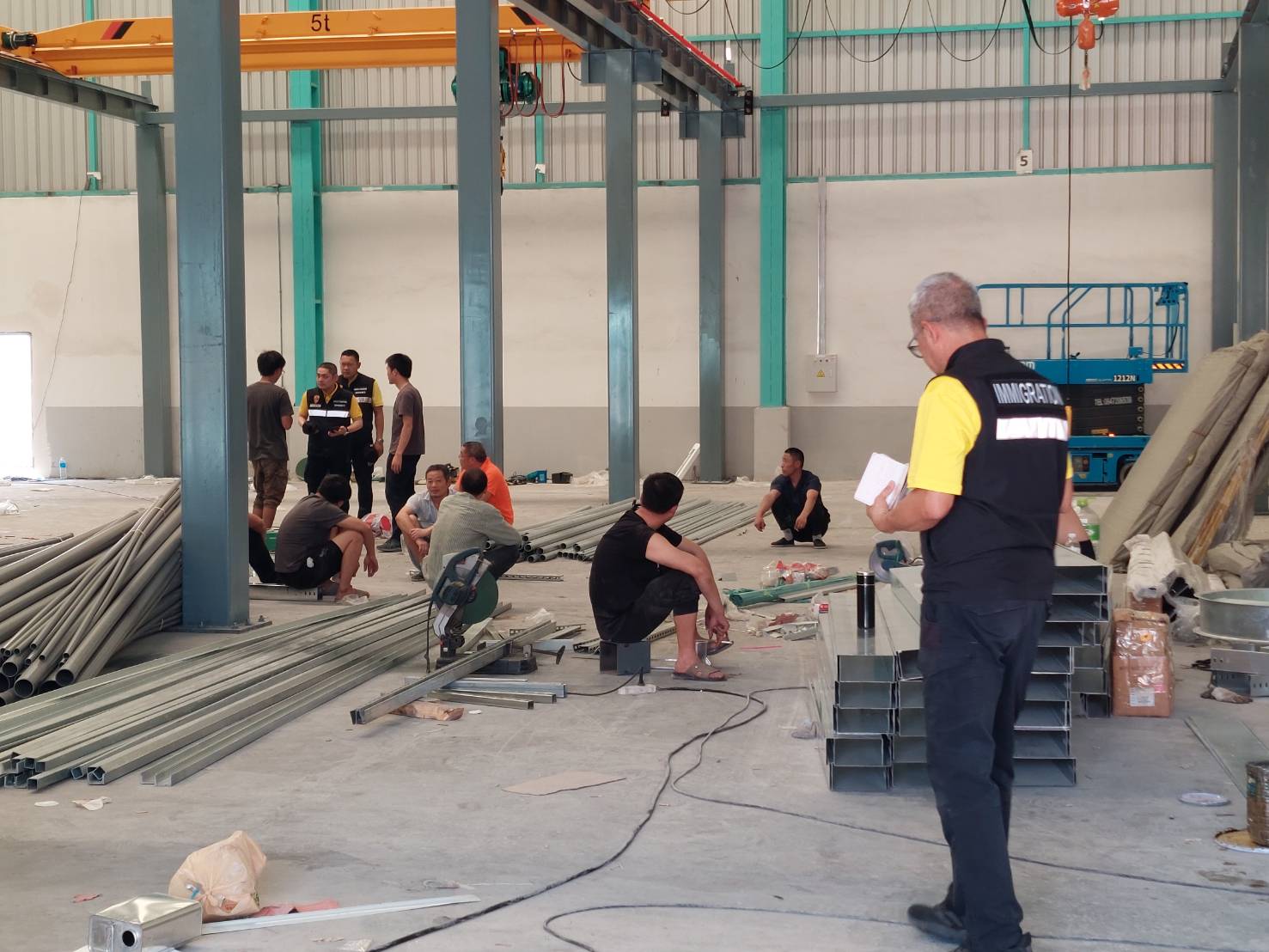 *****เมื่อเวลา 13.00น.วันที่ 7 เมษายน 2567 พ.ต.อ.สุเมธ เจนวงศ์พิทักษ์ ผกก.ตม.จว.สมุทรปราการ พ.ต.ท.คทายุทธ พึ่งเดช รอง ผกก.ตม.จว.สมุทรปราการ พ.ต.ต.หญิง ไปรยพัชร์ ศรีกาญจนากาศ สว.ตม.จว.สมุทรปราการ สั่งการให้เจ้าหน้าที่สืบสวน ตม.จว.สมุทรปราการ ประสานงานร่วมกับเจ้าหน้าที่จัดหางานจังหวัดสมุทรปราการ นำกำลังออกตรวจสอบการทำงานของคนต่างด้าวที่ บริเวณ โกดังสินค้าขนาดใหญ่ตั้งอยู่ริมถนน ตำหรุ-บางพลี หมู่ที่ 21 ต.บางพลีใหญ่ อ.บางพลี จ.สมุทรปราการ ซึ่งกำลังทำการปรับปรุงตกแต่งและติดตั้งเครื่องจักรภายในโกดังสินค้าดังกล่าว เนื่องจากกการสืบสวนทราบว่าในพื้นที่จังหวัดสมุทรปราการ มีการลงทุนของชาวจีน ที่เข้ามาประกอบกิจการ โดยเมื่อเข้ามาแล้วจะมีการมาเช่าอาคาร สำนักงานโกดังสินค้าและจะมีการปรับปรุงตกแต่งอาคารติดตั้งเครื่องจักรต่างๆเพื่อรองรับการประกอบกิจการ แต่ในการปรับปรุงและตกแต่งอาคารจะไม่มีการว่าจ้างแรงงานหรือผู้ประกอบการคนไทย โดยจะนำคนจีนเข้ามาลักลอบแอบทำงานก่อสร้างปรับปรุงตกแต่งและติดตั้งเครื่องจักรกลของอาคารสำนักงานและโกดังสินค้า