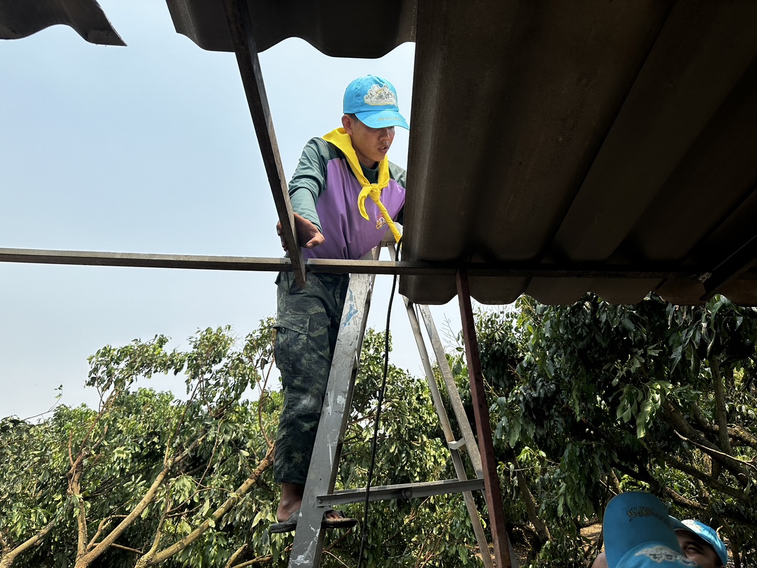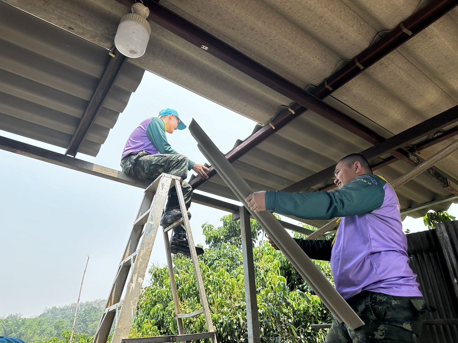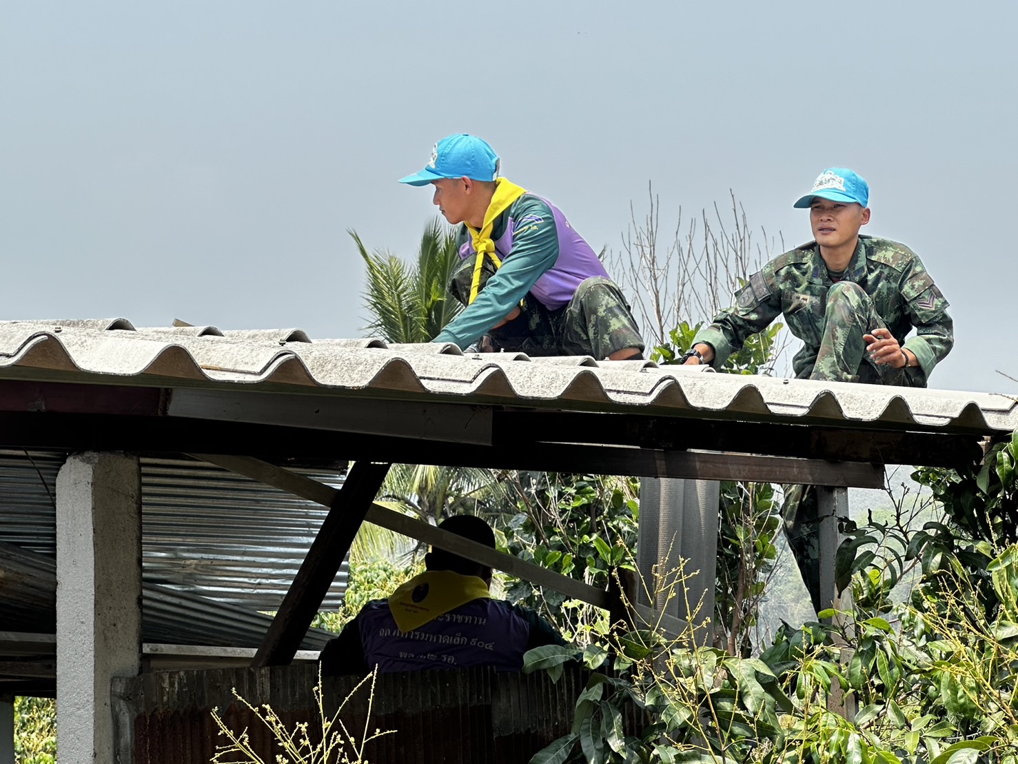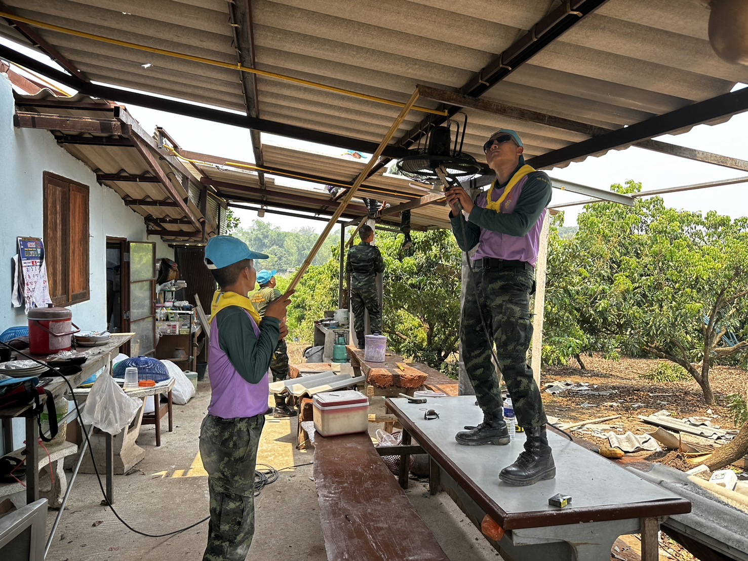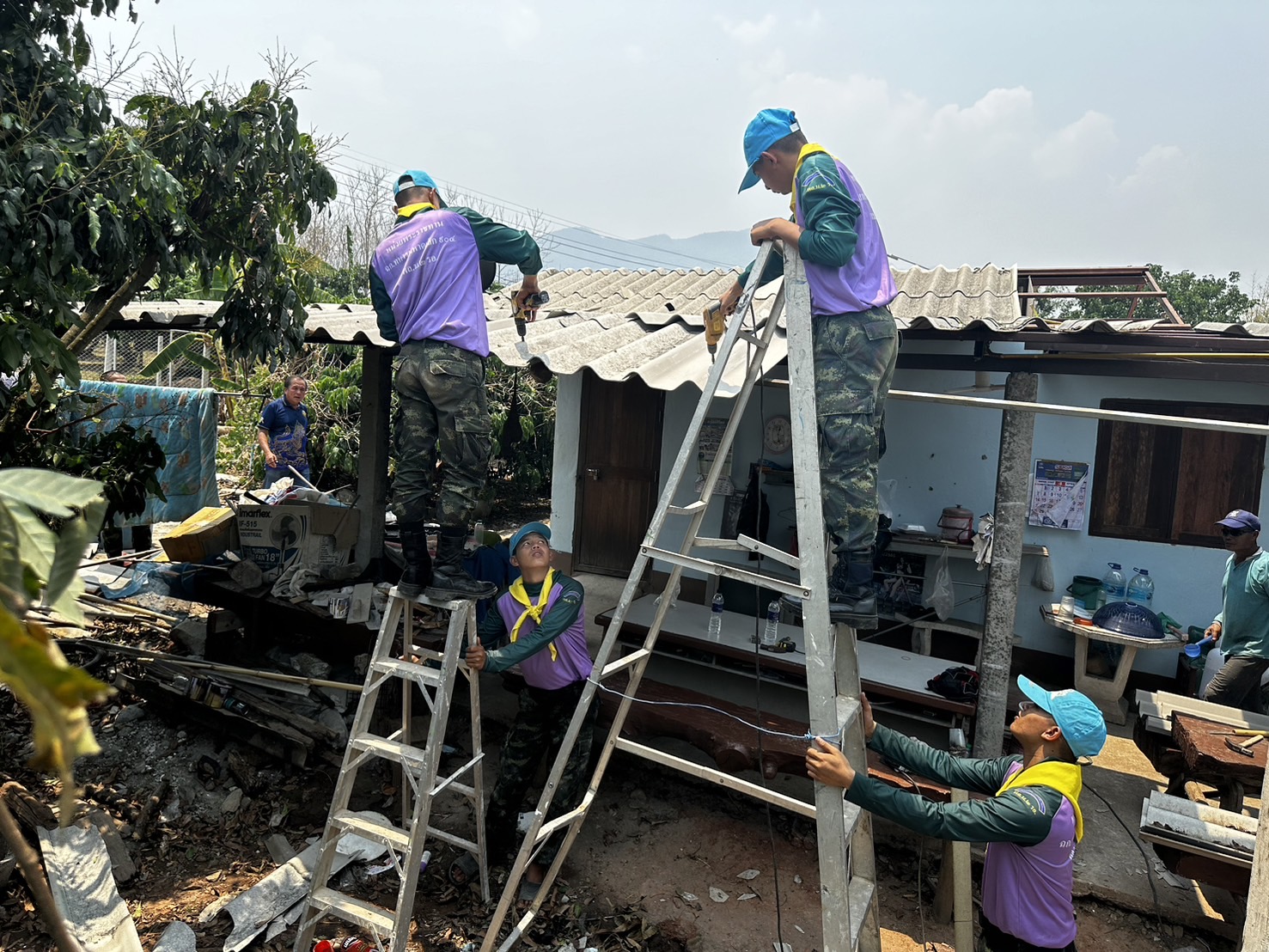 เมื่อ 130900 เม.ย.67 โดยทางพ.อ.วีระชัย ผองแก้ว ผู้บังคับหน่วยเฉพาะกิจไชยานุภาพ กองกำลังผาเมือง จัดกำลังพลจิตอาสา 1 ชป. เข้าช่วยเหลือประชาชนที่ได้รับผลกระทบจากเหตุวาตภัยพายุฤดูร้อนโดยร่วมกันปรับปรุงซ่อมแซมหลังคาบ้านของ นางบัวรอน สุริวรรณ ณ บ.หนองบัว ม.9 ต.เมืองงาย อ.เชียงดาว จว.ช.ม. ซึ่งทางองค์การบริหารส่วนตำบลเมืองงาย ได้จัดซื้อกระเบื้องมาให้โดยทางชาวบ้านและทหารก็ได้ช่วยเหลือหลายบ้าน แต่มีบางหลังเสียหายไม่มากทางชาวบ้านก็ช่วยกัน ส่วนทางทหารก็ได้เข้าช่วยเหลือซ่อมแซมจนแล้วเสร็จทันใช้ก่อนที่ฝนจะลงมาอีก ทหารนอกจากจะช่วยในการปราบปรามยาเสพติดชายแดนเฝ้าระวังการลุกล้ำชายแดน แล้ว ยังคอยออกช่วยเหลือพี่น้องประชาชนที่ได้รับภัยทางธรรมชาติด้วย ประชาชนสามารถเข้าขอความช่วยเหลือในชุดปฏิบัติการที่ใกล้บ้านท่านได้ขอให้รู้ทางทหารจะคอยเข้าให้การช่วยเหลือฟรีทันที