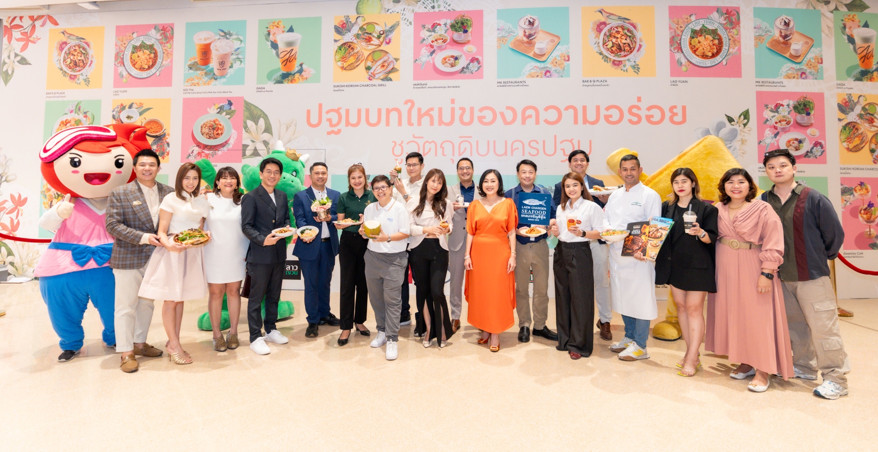 เซ็นทรัล นครปฐม เปิดโปรเจคต์พิเศษ ตอกย้ำ “เมืองแห่งครัวโลก” จับมือ 16 ร้านอาหารชั้นนำ ได้แก่ Bar B Q Plaza, Saemaeul, Salad Factory, Sukishi Korean Charcoal Grill, ลาวญวน, แหลมเจริญซีฟู้ด, KOI Thé, ชาตรามือ, MK Restaurants, Shabushi, Gaga, Zen, Sizzler, Oishi Ramen พร้อมด้วยร้านดังท้องถิ่นอย่าง เสน่ห์จันทน์ และ ย้อยหย่อย Café รังสรรค์ “ปฐมบทใหม่ของความอร่อย” ชู 4 วัตถุดิบท้องถิ่นของดีของขึ้นชื่อนครปฐม ไม่ว่าจะเป็น ส้มโอ หมู มะพร้าวน้ำหอม กุ้งแม่น้ำ สร้างสรรค์เป็นจานอร่อยครบรส ทั้งคาว-หวาน ไทย-อินเตอร์ พร้อมแล้วที่ให้ทุกคนได้ลิ้มลองเฉพาะสาขาเซ็นทรัล นครปฐม เท่านั้น