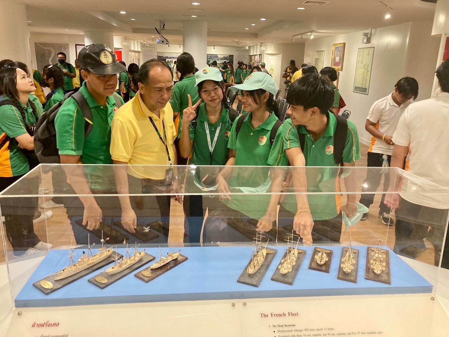 หลังจากนั้น คณะนักเรียน นักศึกษา ได้เยี่ยมชมพิพิธภัณฑ์เรือหลวงแม่กลอง แล้วนำนักเรียน นักศึกษาลงพื้นที่ปลูกป่าชายเลน ต่อมานำคณะเข้าศึกษาศูนย์การเรียนรู้ เกษตรทฤษฎีใหม่ “ โคกหนองนา กองทัพเรือ “ ในพื้นที่เรือนจำ ฐานทัพเรือกรุงเทพ โดย น.ต.ปวริศ ผันสืบ ผู้บังคับเรือนจำฐานทัพเรือกรุงเทพ และวิทยากรให้การต้อนรับ จัดบรรยายการดำเนินงานและให้นักเรียน นักศึกษาร่วมกันหว่านข้าวในแปลงนา,ทดลองการทำปุ๋ยอินทรีย์ ,ปุ๋ยชีวภาพ ศูนย์การเรียนรู้“โคกหนองนา กองทัพเรือ” เริ่มดำเนินการเมื่อวันที่ 4 พฤศจิกายน 2563 โดยนำโคกหนองนา โมเดล เป็นต้นแบบและน้อมนำพระราชดำรัสของในหลวงรัชกาลที่9 ในเรื่องเศรษฐกิจพอเพียงและเกษตรทฤษฎีใหม่มาใช้บริหารจัดการน้ำและพื้นที่ทำการเกษตร เพื่อมุ่งหวังที่จะสร้างจุดเปลี่ยนให้กับชุมชนด้วยการแบ่งพื้นที่เป็นสัดส่วน 30 : 30 : 30 : 10 นายอำนาจ อ้วนเจริญ ได้กล่าวขอบคุณคณะวิทยากรที่ให้ความรู้และประสบการณ์แก่นักเรียน นักศึกษา โดยเฉพาะการสร้างจิตสำนึก ความตระหนักถึงคุณูปการของบรรพบุรุษในประวัติศาสตร์ชาติไทยในอดีตมาจนถึงปัจจุบัน .