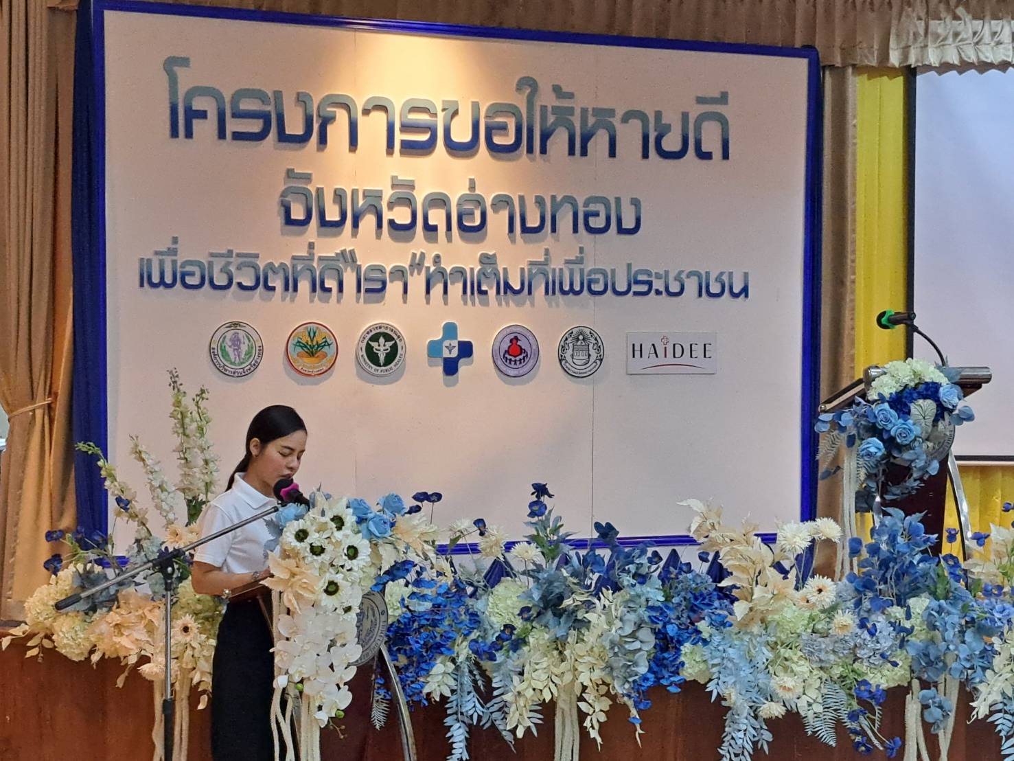 ทั้งนี้ นายแพทย์ทวีโชค โรจนอารัมภ์กุล นายแพทย์สาธารณสุขจังหวัดอ่างทอง กล่าวรายงาน โครงการนี้ เกิดจากความร่วมมือหลายภาคส่วน ได้แก่ สาธารณสุขจังหวัด สาธารณสุขอำเภอ โรงพยาบาลส่งเสริมสุขภาพตำบล องค์การบริหารส่วนจังหวัดอ่างทอง องค์กรปกครองส่วนท้องถิ่น สมาชิกสภาผู้แทนราษฎร และภาคเอกชน