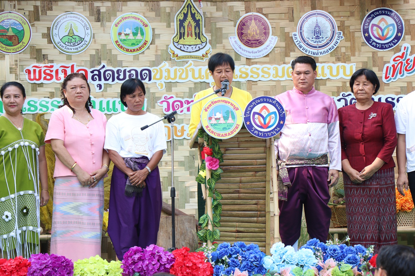 วันที่ 5 พฤษภาคม 2567 ที่ตลาดริมแควเมืองท่าขนุน ตำบลท่าขนุน อำเภอทองผาภูมิ จังหวัดกาญจนบุรี นางยุพา ทวีวัฒนะกิจบวร ปลัดกระทรวงวัฒนธรรม เป็นประธานพิธีเปิดตัวสุดยอดชุมชนต้นแบบ “เที่ยวชุมชน ยลวิถี” ชุมชนคุณธรรมฯ วัดท่าขนุน จังหวัดกาญจนบุรี