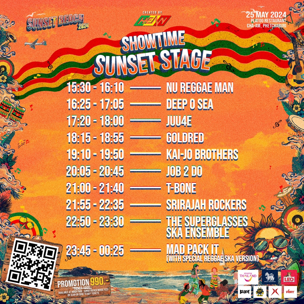 สายเร็กเก้สกานานาชาติใหญ่ที่สุดของเมืองไทย “Sunset Beach Music Festival 2024” วันเสาร์ที่ 25 พ.ค 67 ชายหาดร้านปลาทู อ.ชะอำ จ.เพชรบุรี ตั้งแต่เวลา 13.00 – 01.00 น.