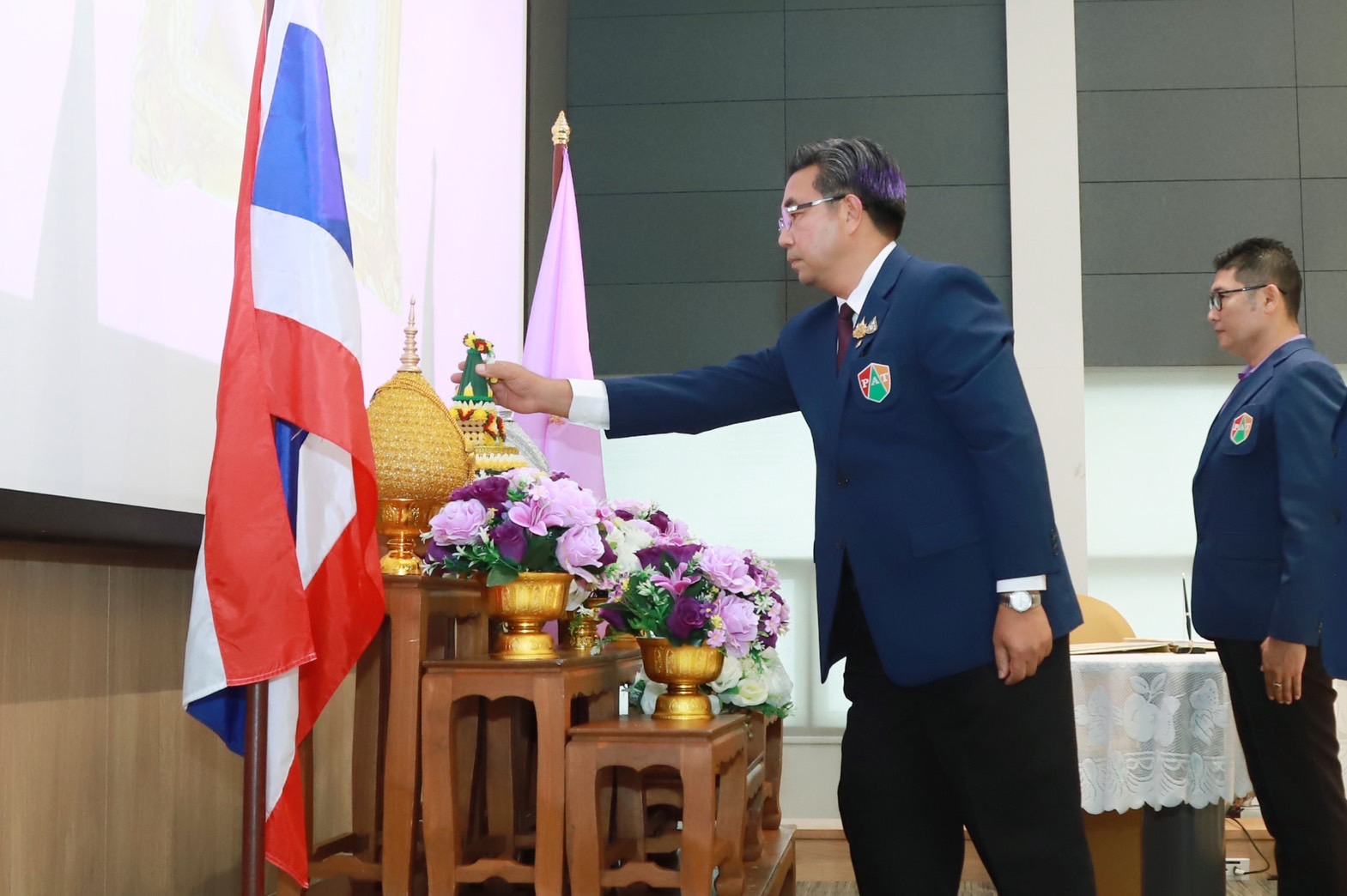 ที่ห้องประชุมปัญญางาม วิทยาลัยเทคโนโลยีปัญญาภิวัฒน์ อ.เมือง จ.นนทบุรี นายวิเชียร เนียมน้อม ผู้แทนผู้รับใบอนุญาตและผู้อำนวยการวิทยาลัยเทคโนโลยีปัญญาภิวัฒน์ พร้อมด้วยคณะผู้บริหาร ครู และบุคลากร พร้อมใจกันร่วมพิธีถวายพระพรชัยมงคล เนื่องในโอกาสวันเฉลิมพระชนมพรรษา สมเด็จพระนางเจ้าสุทิดา พัชรสุธาพิมลลักษณ พระบรมราชินี 3 มิถุนายน 2567 โดยประธานในพิธีถวายเครื่องราชสักการะพระบรมฉายาลักษณ์ ถวายพานพุ่ม แล้วเปิดกรวยกระทงดอกไม้