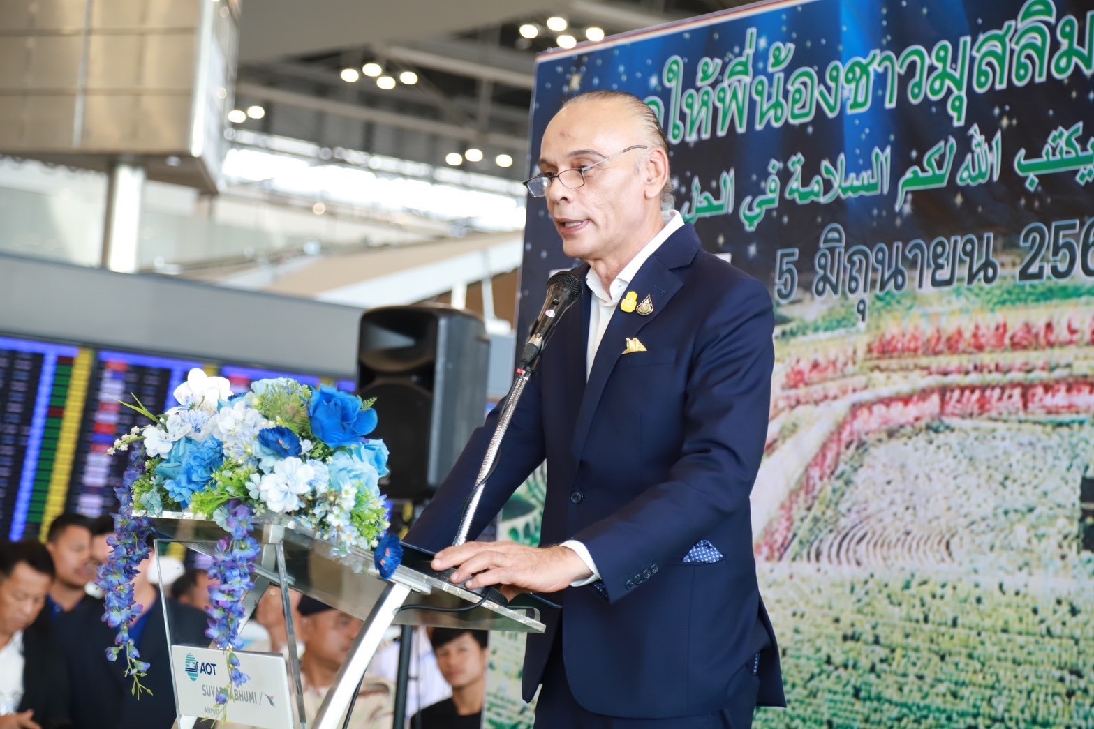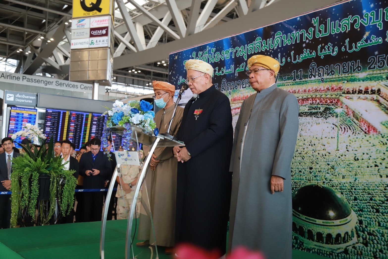 *****เมื่อเวลา 09.45 น. วันที่ 5 มิถุนายน 2567 ท่าอากาศยานสุวรรณภูมิ (ทสภ.) บริษัท ท่าอากาศยานไทยจำกัด (มหาชน) (ทอท.) ร่วมกับกรมการปกครอง และจังหวัดสมุทรปราการ จัดพิธีส่งและอำนวยพรผู้เดินทางไปประกอบพิธีฮัจย์ประจำปี 2567 ณ ราชอาณาจักรซาอุดีอาระเบีย โดยมี นายชาดา ไทยเศรษฐ์ รัฐมนตรีช่วยว่าการกระทรวงมหาดไทย เป็นประธานในพิธี พร้อมด้วย นายสุทธิพงษ์ จุลเจริญ ปลัดกระทรวงมหาดไทยนายอับดุรเราะห์มาน อับดุลอะซีช อัลซุฮัยบานี เอกอัครทูตราชอาณาจักรซาอุดีอาระเบียประจำประเทศไทยนายอรุณ บุญชม จุฬาราชมนตรี นายศุภมิตร ชิณรี ผู้ว่าราชการจังหวัดสมุทรปราการ และ นายกิตติพงศ์ กิตติขจรผู้อำนวยการท่าอากาศยานสุวรรณภูมิ เข้าร่วมในพิธี ณ อาคารผู้โดยสารขาออก ชั้น 4 ประตู 8
