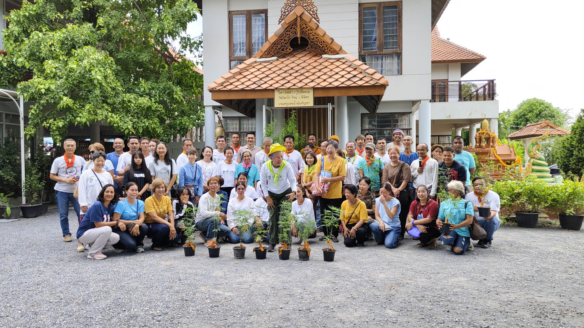 ที่มูลนิธิข้าวขวัญ อำเภอเมืองสุพรรณบุรี ได้จัดพิธีบวชต้นกัญชา มีประชาชนและผู้ป่วยจากหลายจังหวัดเกือบ 100 คนเข้าร่วมกิจกรรม