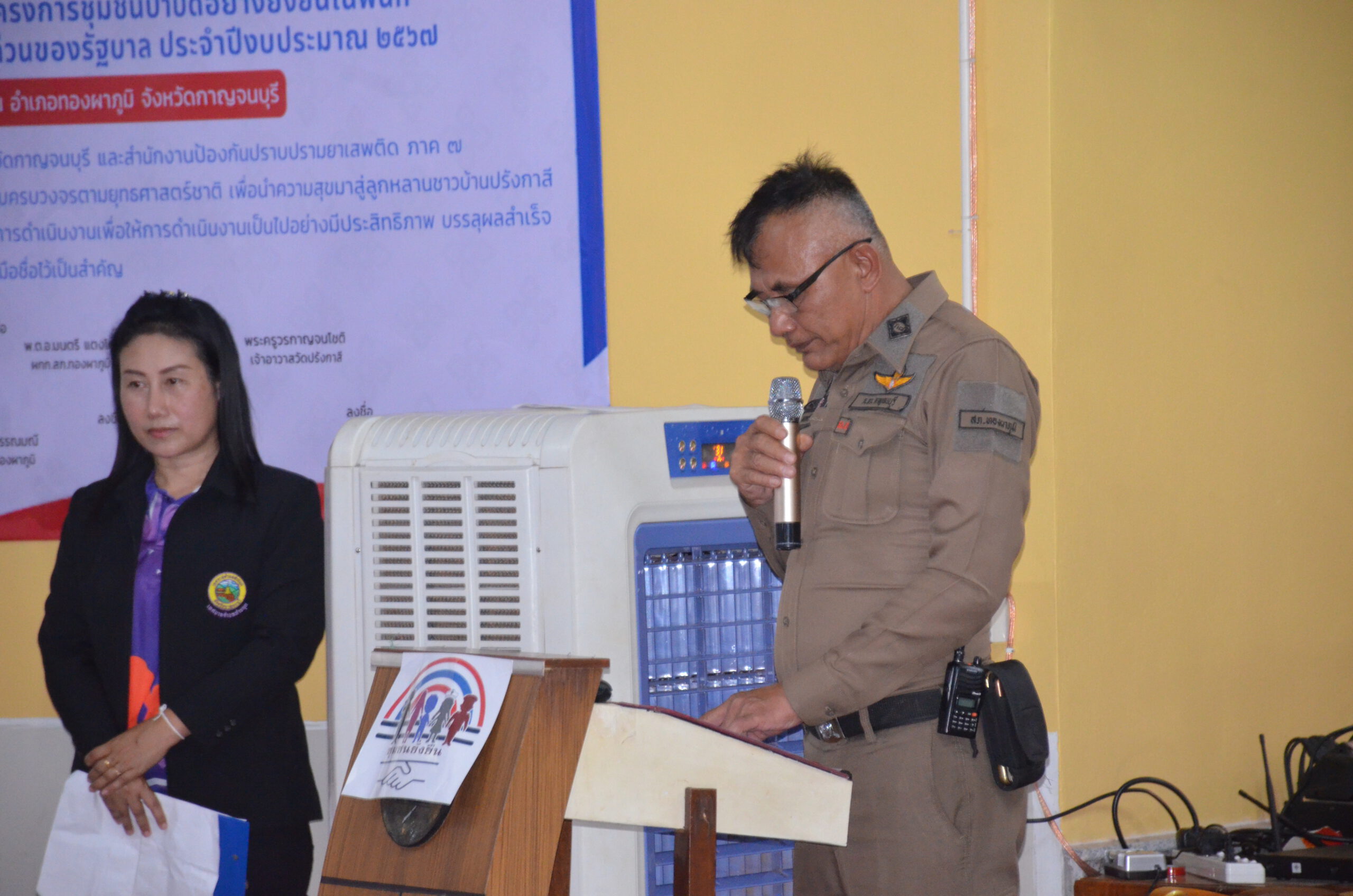 กาญจนบุรี สภ.ทองผาภูมิบูรณาการร่วมกับฝ่ายปกครอง สาธารณสุขจัดโครงการชุมชนบำบัดอย่างยั่งยืนในพื้นที่แพร่ระบาดยาเสพติด ตามนโยบายเร่งด่วนรัฐบาลเพื่อแก้ไขปัญหายาเสพติด ในพื้นที่บ้านปรังกาสี ตำบลท่าขนุน