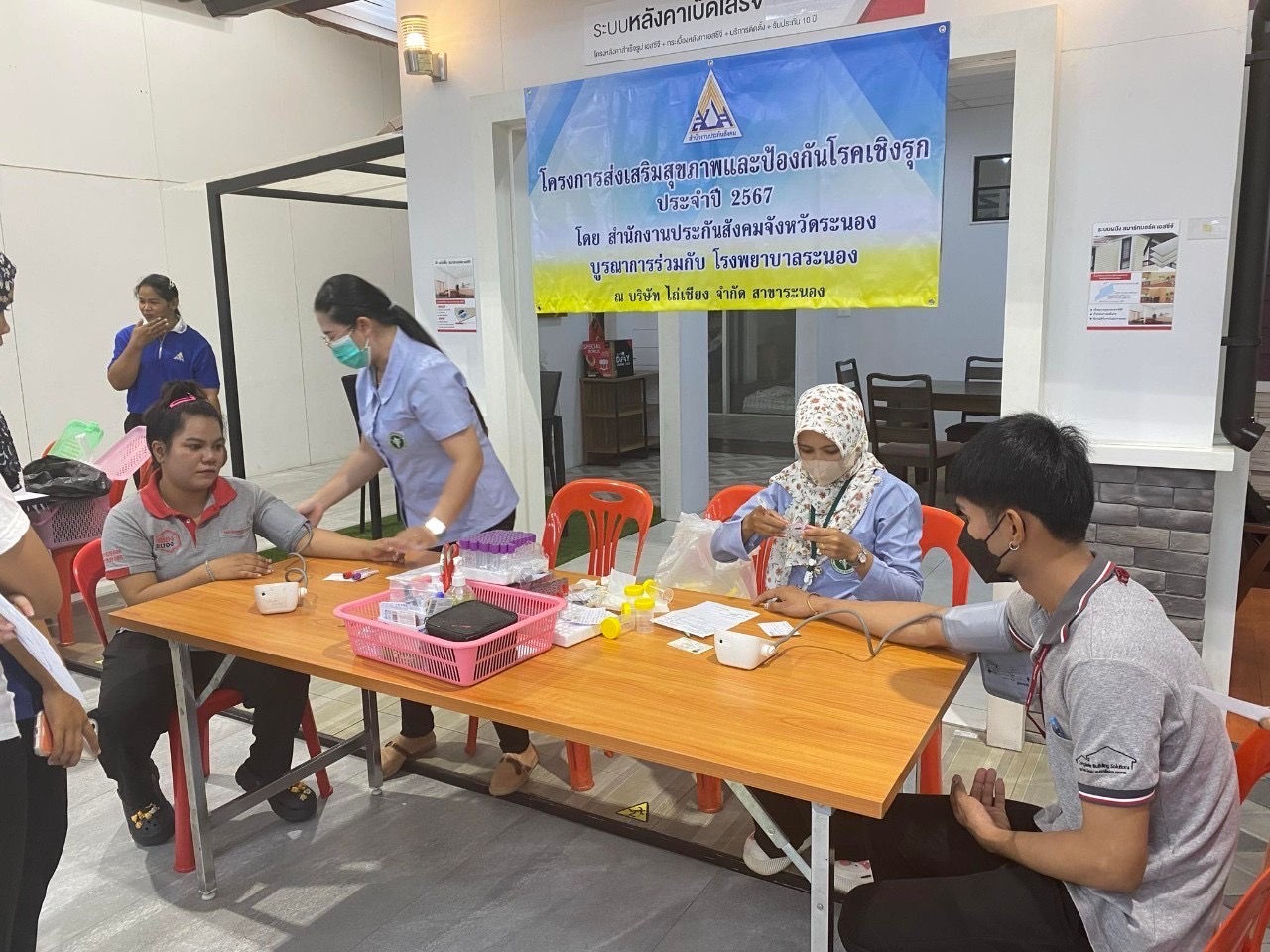 ผู้สื้อข่าวรายงานว่า วันที่ 14 มิ.ย.67 นพ.นิคม มะลิทอง ผู้อำนวยการโรงพยาบาลระนอง ได้มอบหมายให้เจ้าหน้าที่กลุ่มงานอาชีวเวชกรรมและเจ้าหน้าที่ ห้องบัตรออกหน่วยตรวจสุขภาพเชิงรุกแก่ผู้ประกันตน ภายใต้โครงการส่งเสริมสุขภาพและป้องกันโรคเชิงรุกโดยบูรณาการร่วมกับสำนักงานประกันสังคมจังหวัดระนอง ณ บริษัท ไถ่เชียงระนอง จำกัด