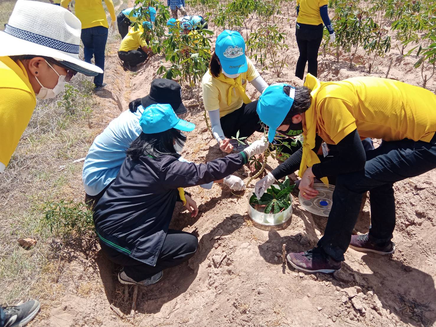 ต่อมานายวีระศักดิ์ สุขทอง หัวหน้าสำนักงานเกษตรจังหวัดกาญจนบุรี ได้จัด กิจกรรมจิตอาสากำจัดหนอนกระทู้ในไร่มันสำปะหลัง ประกอบด้วย กรมส่งเสริมการเกษตร จิตอาสา 904 สำนักงานส่งเสริมและพัฒนาการเกษตร ที่2จังหวัดราชบุรี (สสก.2 รบ). สำนักงานเกษตรจังหวัดกาญจนบุรีสำนักงานเกษตรอำเภอทุกอำเภอ สำนักงานเกษตรอำเภอทุกอำเภอ ยกเว้นสังขละบุรี ทองผาภูมิ และศรีสวัสดิ์ และเกษตรกร ลงพื้นที่หมู่ที่ 4 ตำบลดอนตาเพชร อำเภอพนมทวน จังหวัดกาญจนบุรีร่วมกันจับหนอนกระทู้หอมกัดกินต้นมันสำปะหลัง โดยแต่ละคนจับหนอนกระทู้ใส่ถุงและมอบให้สำนักงานส่งเสริมและพัฒนาการเกษตร ที่2จังหวัดราชบุรี (สสก.2 รบ) เพื่อเป็นการทำลายวงจรหนอนกระทู้ในเบื้องต้น จากนั้นสำนักงานส่งเสริมและพัฒนาการเกษตร ที่ 2 จังหวัดราชบุรี (สสก.2 รบ) นำไปเพราะเชื่อเพื่อนำมาใช้ประในการกำจัดหนอนกระทู้หอมทีมากัดกินทำลายไร่มันสัมปะหลังในระยะยาว ต่อไป