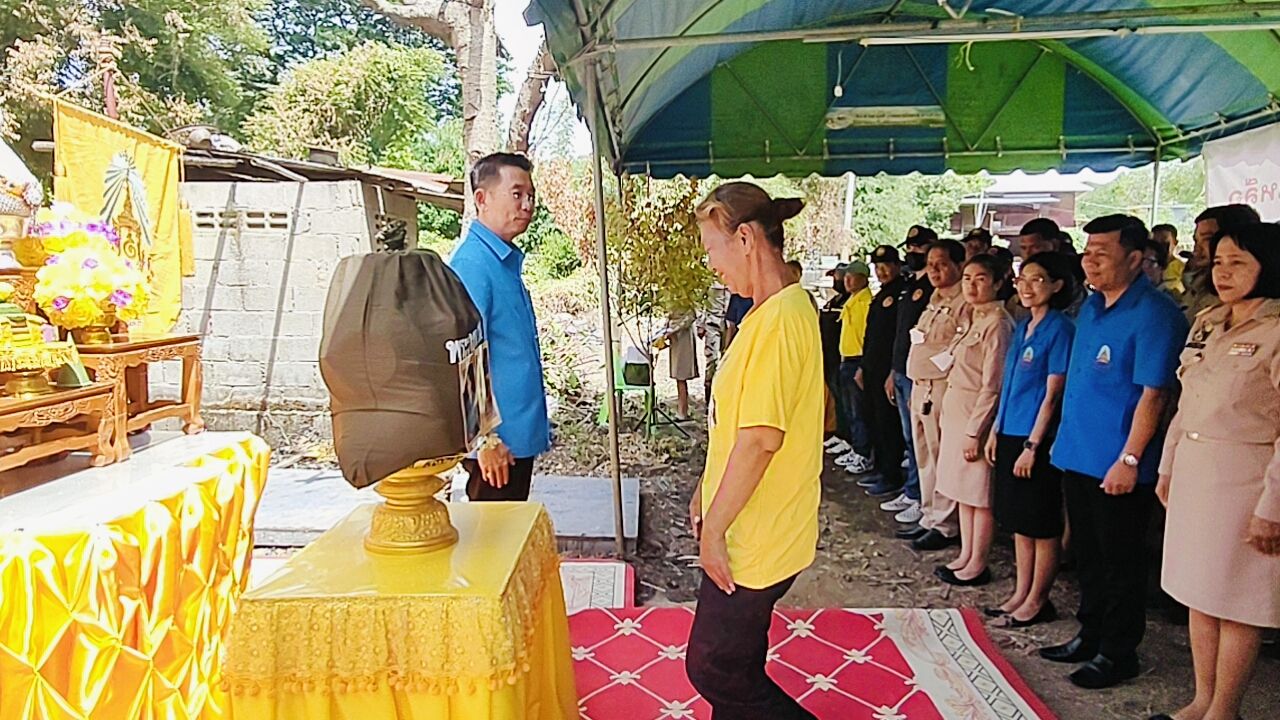 ร่วมพิธีดังกล่าว ณ บ้านเลขที่ 35 หมู่ที่ 2 ตำบลชีน้ำร้าย อำเภออินทร์บุรี จังหวัดสิงห์บุรี ทั้งนี้ เหล่ากาชาดจังหวัดสิงห์บุรี ได้มอบเงินช่วยเหลือ จำนวน 3,000 บาท และมอบเครื่องอุปโภค บริโภคและน้ำดื่ม จำนวน 1 ชุด สำนักงานพัฒนาสังคมและความมั่นคงของมนุษย์จังหวัดสิงห์บุรี มอบเครื่องอุปโภค บริโภค จำนวน 1 ชุดมอบเงินช่วยเหลือสงเคราะห์อีกจำนวน 3,000 บาท