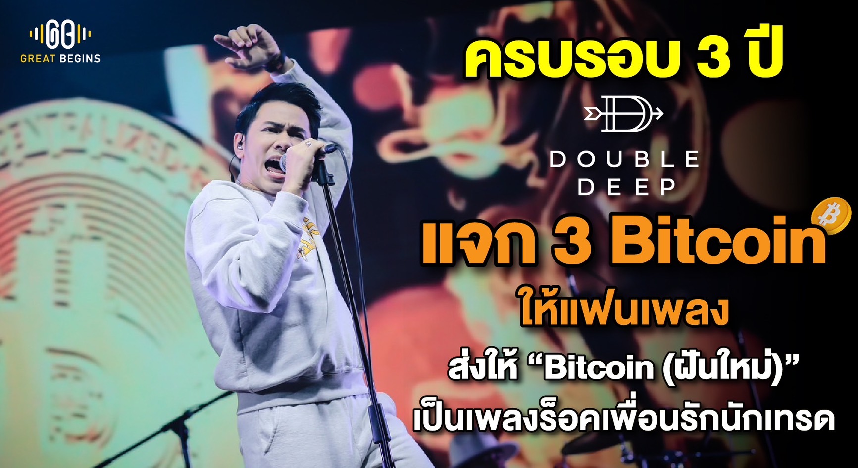 แอ็คมี่ นักร้องนำ DoubleDeep วงร็อคเพื่อนรักนักเทรด โพสต์ Official Facebook ของวงเพื่อรำลึกความหลังเมื่อวันที่ 23 มิถุนายน ซึ่งเป็นวันครบรอบ 3 ปี ที่วง DoubleDeep ได้มีแสดงสดครั้งแรกอย่างเป็นทางการและไลฟ์สดให้แฟน ๆ ชมกันทั่วประเทศ ในเพลง “Bitcoin (ฝันใหม่)” ซึ่งเป็นซิงเกิลที่ 3 ของวง พร้อมสร้างปรากฏการณ์ครั้งยิ่งใหญ่ในวงการเพลงด้วยการแจก Bitcoin ให้กับแฟนเพลงที่เข้าร่วมชมกันสด ๆ จำนวนมากถึง 3 Bitcoin ที่คิดเป็นมูลค่าในวันนั้นคือ 5.4 ล้านบาท แต่ถ้าคิดมูลค่าในปัจจุบันวันครบรอบอยู่ที่ประมาณ 6.96 ล้านบาทเลยทีเดียว ผลจากการแสดงสดที่สุดมันส์ในวันนั้นทำให้ซิงเกิล “Bitcoin (ฝันใหม่)” ได้รับการกล่าวขานว่าเป็น “เพลงร็อคเพื่อรักนักเทรด” และส่งผลให้ DoubleDeep ได้รับฉายาจากแฟนเพลงและแฟนเทรดว่าเป็น “วงร็อคเพื่อรักนักเทรด” ในที่สุด