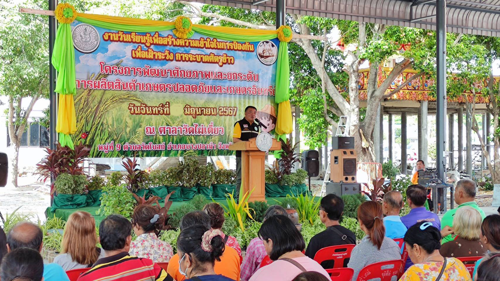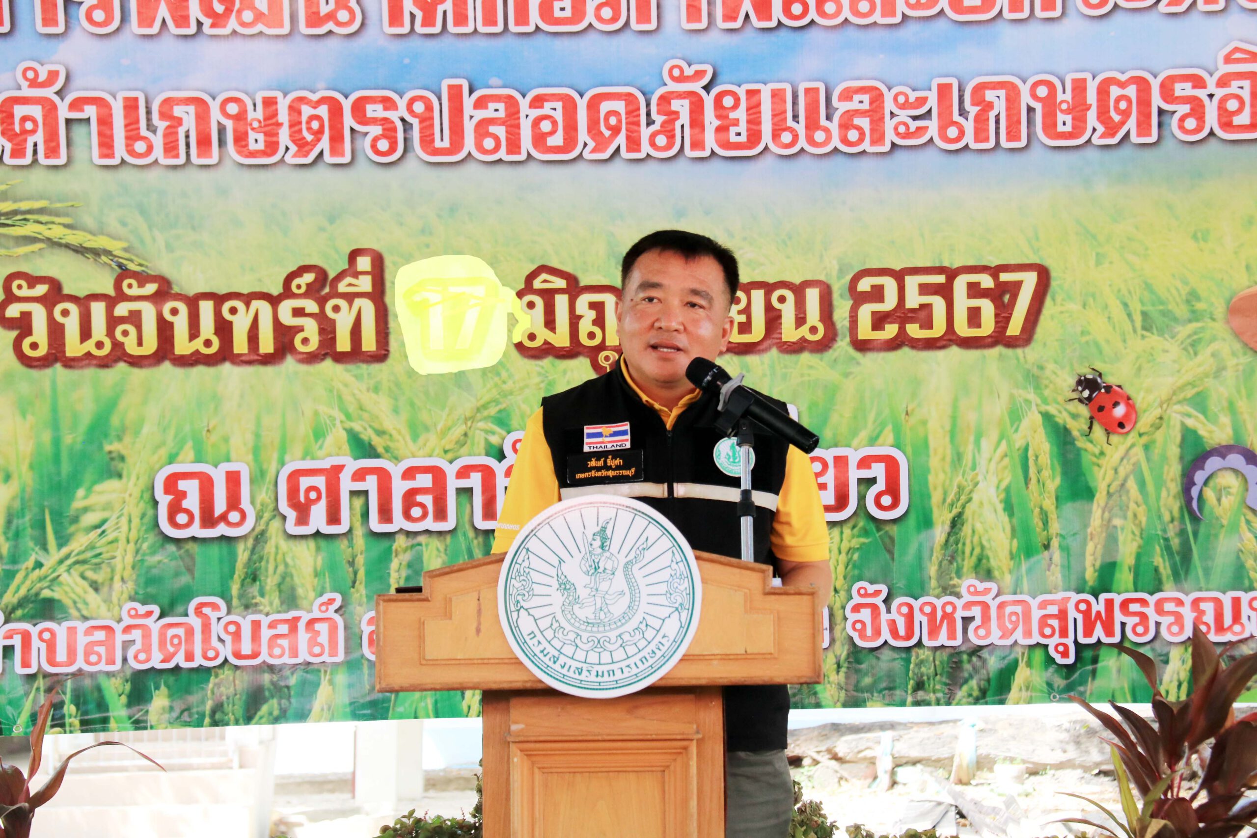 ที่จังหวัดสุพรรณบุรี วันที่ 27 มิ.ย.2567 นายวสันต์ จี้ปูคำ เกษตรจังหวัดสุพรรณบุรี เปิดเผยว่าสำนักงานเกษตรจังหวัดสุพรรณบุรี ได้ จัดงานวันเรียนรู้ เพื่อสร้างความเข้าใจในการป้องกัน เพื่อเฝ้าระวังการระบาดศัตรูพืช (ข้าว) โครงการพัฒนาศักยภาพและยกระดับการผลิตสินค้าเกษตรปลอดภัยและเกษตรอินทรีย์วัดไผ่เดี่ยว ตำบลวัดโบสถ์ อำเภอบางปลาม้า จังหวัดสุพรรณบุรี โดยมีนายสรรค์ชัย สมแก้ว หัวหน้ากลุ่มอารักขาพืช สำนักงานเกษตรจังหวัดสุพรรณบุรี กล่าวรายงานวัตถุประสงค์การจัดงาน