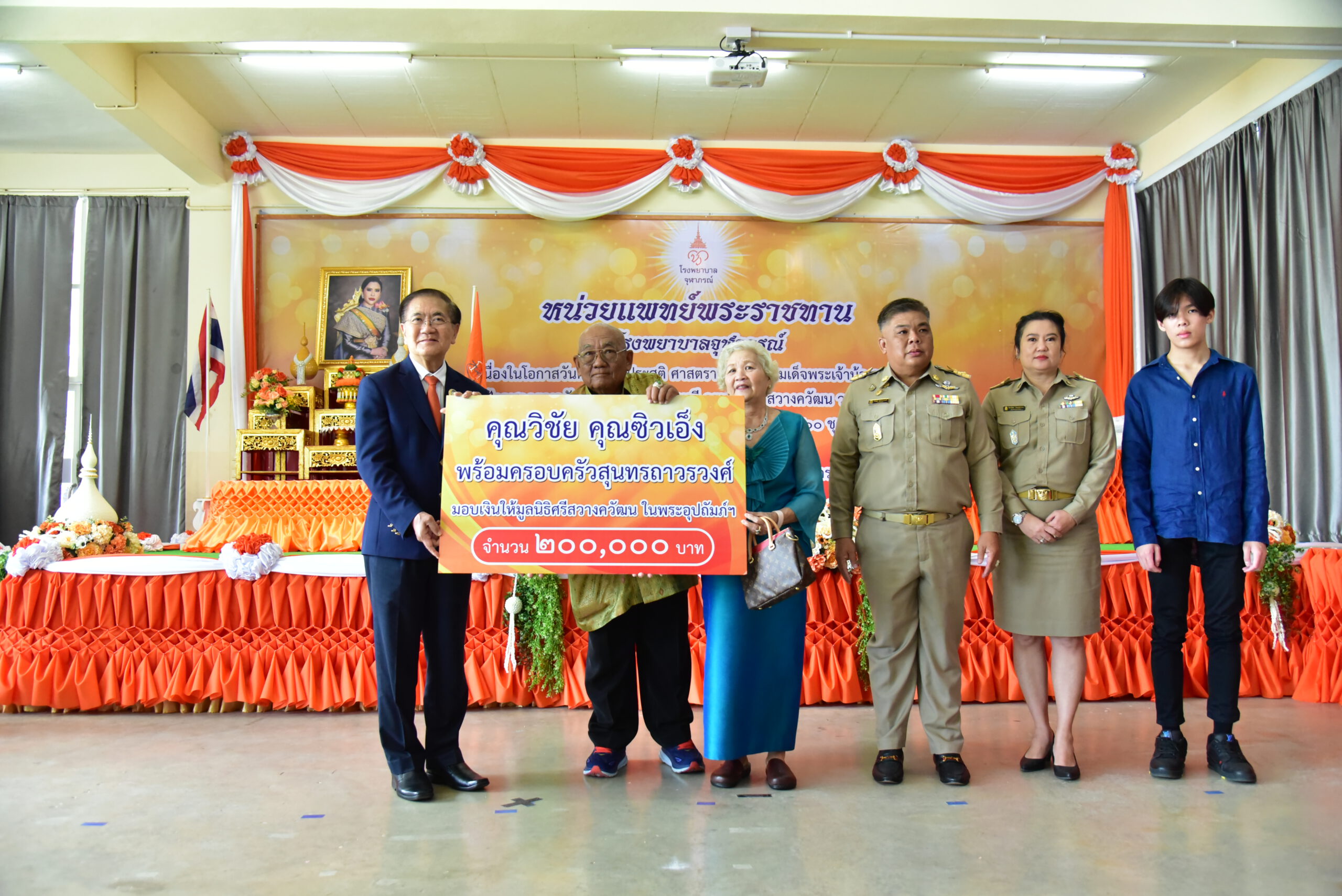 โอกาสนี้ นายวิชัย นางซิวเอ็ง สุนทรถาวรวงศ์ พร้อมครอบครัว ได้มอบเงินจำนวน 200,000 บาท ให้กับมูลนิธิศรีสวางควัฒน ในพระอุปถัมภ์ฯ อีกด้วย