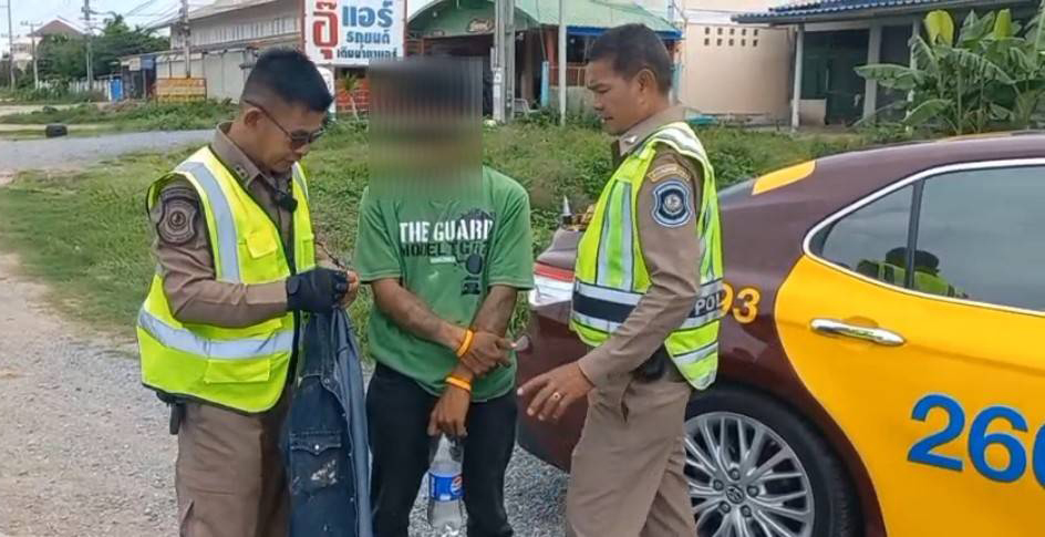 สุพรรณบุรี ตำรวจทางหลวงด่านช้างจับหนุ่มก่อสร้างพกยาบ้าตรวจสอบประวัติเจอหมายจับ