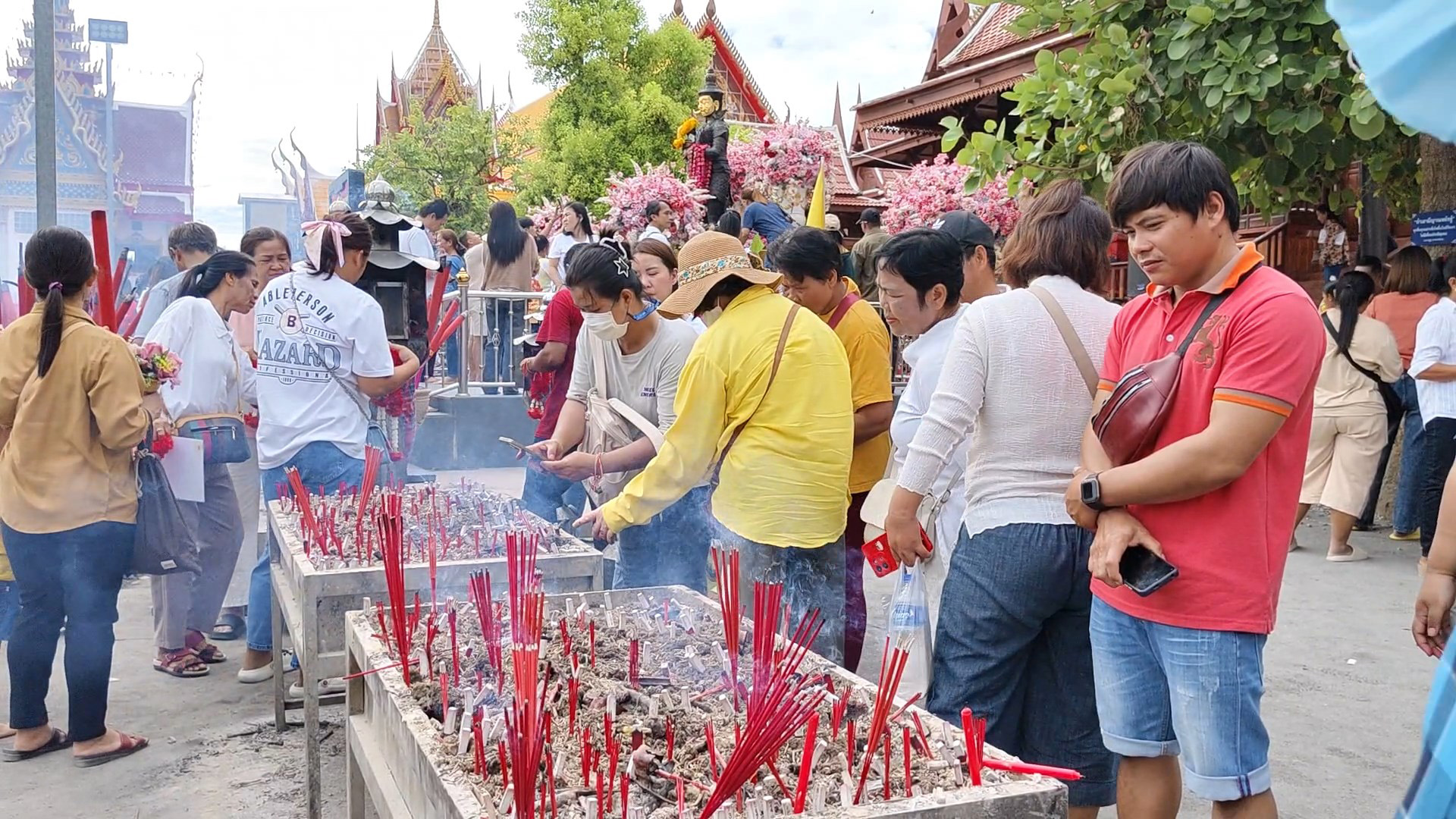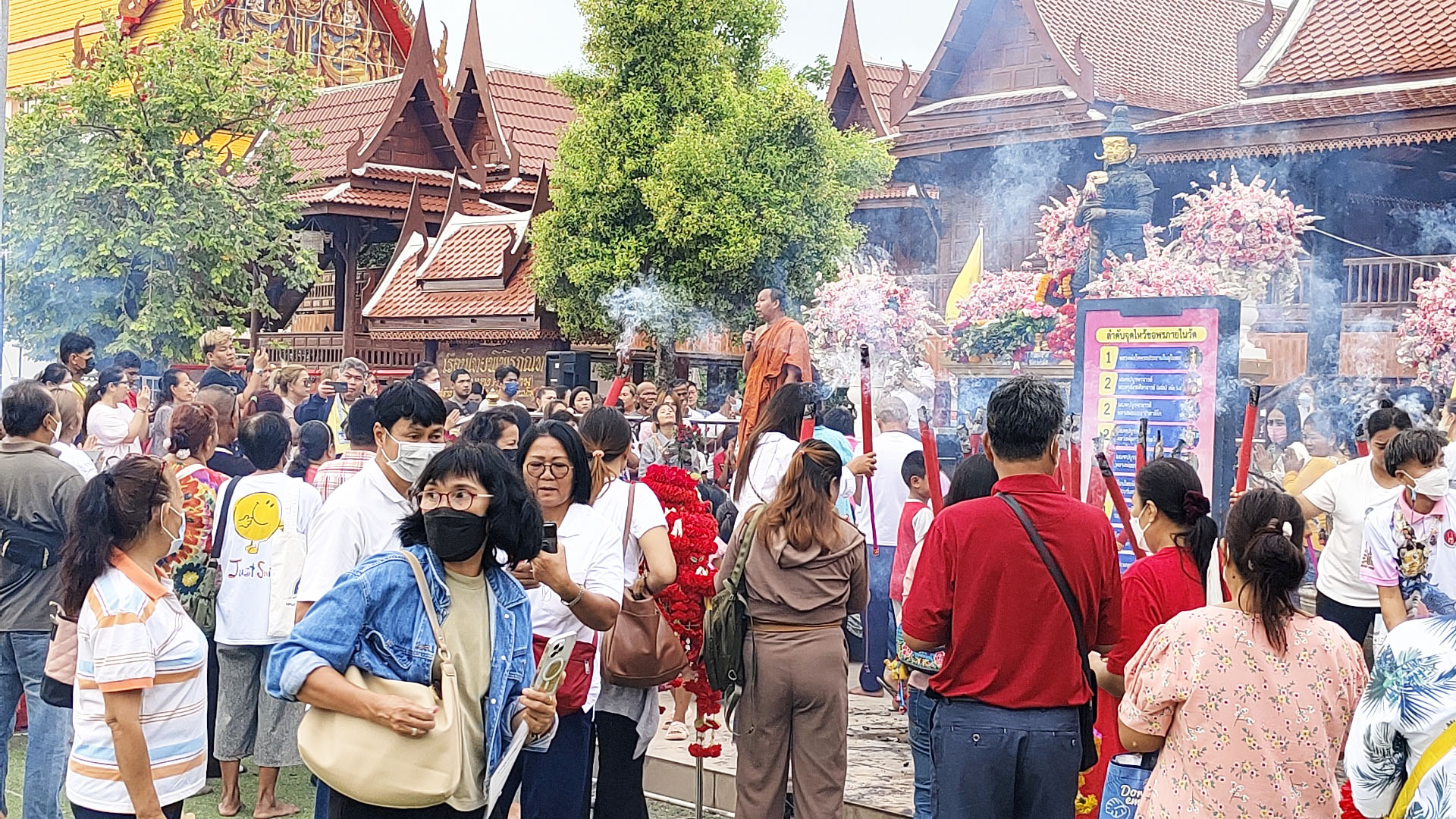 สุพรรณบุรี สาธุชนคนสายมูนับหมื่นเข้าคิวข้ามคืนรอเช่าบูชาผ้ายันต์กัน8ทิศและเจิมฝ่ามือ