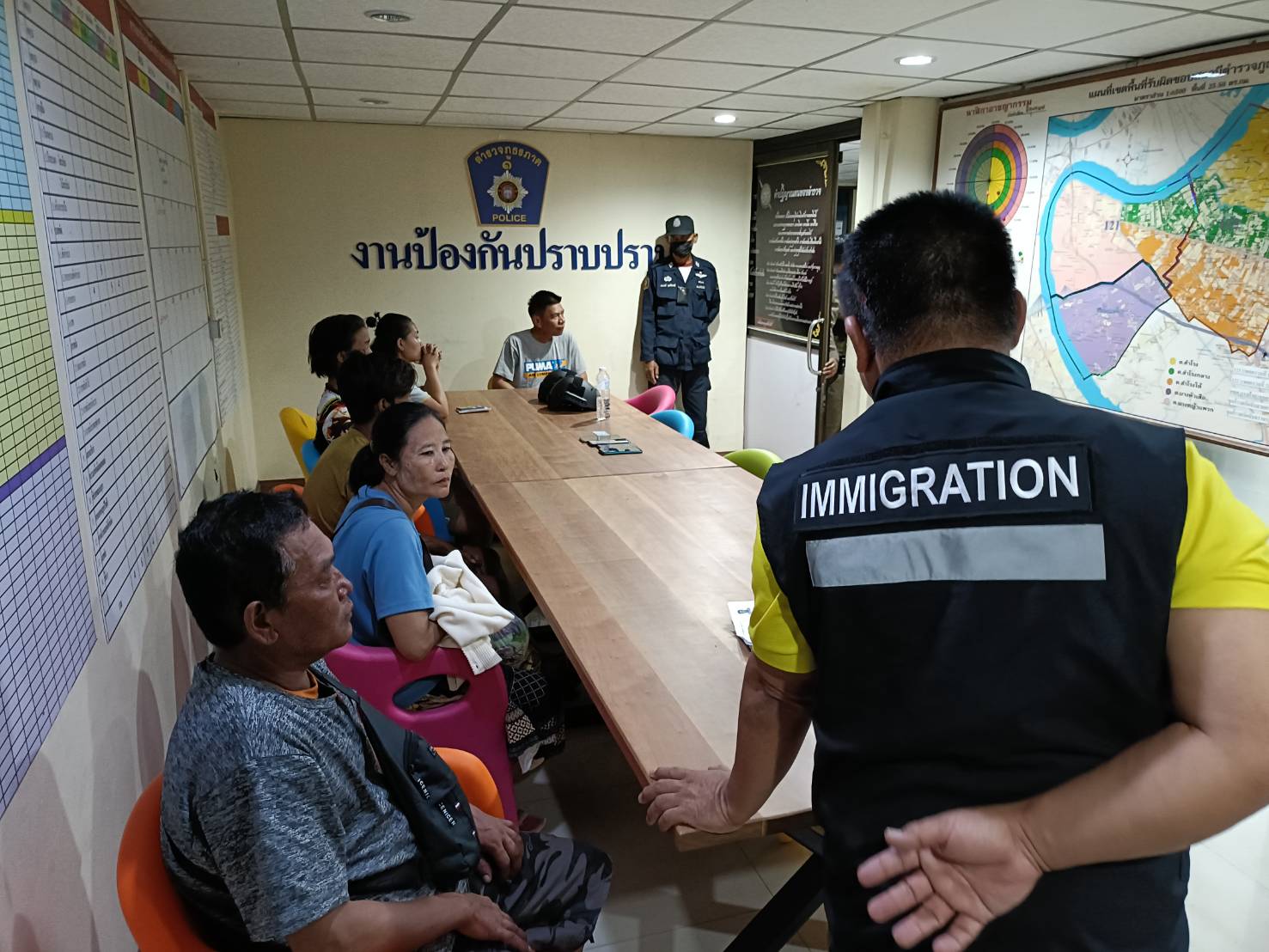 วันที่ 13 กรกฎาคม 2567 ตม.จว.สมุทรปราการ โดย พ.ต.อ.สุเมธ เจนวงศ์พิทักษ์ ผกก.ตม.จว.สมุทรปราการ ได้สั่งการให้เจ้าหน้าที่ สืบสวนทำการประสานกับเจ้าหน้าที่ตำรวจ สภ.สำโรงใต้ ตรวจสอบที่บ้านเช่าหลังหนึ่งตั้งอยู่ในพื้นที่ ต.บางหญ้าแพรกอ.พระประแดง จ.สมุทรปราการ เนื่องจากการสืบสวนและการแจ้งเบาะแสจากพลเมืองดีทราบว่ามีการนำคนต่างด้าวมาพักอาศัยเพื่อรอส่งกระจายเข้าทำงานในพื้นที่ โดยคนต่างด้าวเหล่านี้ไม่มีเอกสารการอนุญาตให้เข้ามาและอยู่ในราชอาณาจักรเมื่อเจ้าหน้าที่ได้เข้าทำการตรวจสอบบ้านหลังดังกล่าวพบคนต่างด้าวจำนวน 22 คน คน เป็นสัญชาติเมียนมา 11 คน สัญชาติ ลาว 1 คน สัญชาติกัมพูชา 10 คน แบ่งอยู่ตามห้องในบ้านเช่า จากการตรวจสอบคนต่างด้าวไม่มีเอกสารแสดงต่อเจ้าหน้าที่และรับว่าหลบหนีเข้ามาเพื่อหางานทำโดยมีคนไทยคอยให้การช่วยเหลือ จากการสอบถามนาย สำเภา แสงโพธิ์ คนไทยให้การรับสารภาพว่าตนเองเป็นคนเช่าบ้านหลังดังกล่าว และคนต่างด้าวทั้งหมดตนเองเป็นคนดูแลและจัดหาที่พักอาศัยให้ เจ้าหน้าที่ได้ทำการจับกุม และแจ้งข้อหานายสำเภา “ ให้ที่พักอาศัย ซ่อนเร้น ช่วยเหลือด้วยประการใดๆให้คนต่างด้าวพ้นจากการจับกุม” และแจ้งข้อหาคนต่างด้าว“ เป็นคนต่างด้าวเข้ามาและอยู่ในราชอาณาจักรโดยไม่ได้รับอนุญาต หรือการอนุญาตสิ้นสุด” นำส่งพนักงานสอบสวน สภ.สำโรงใต้