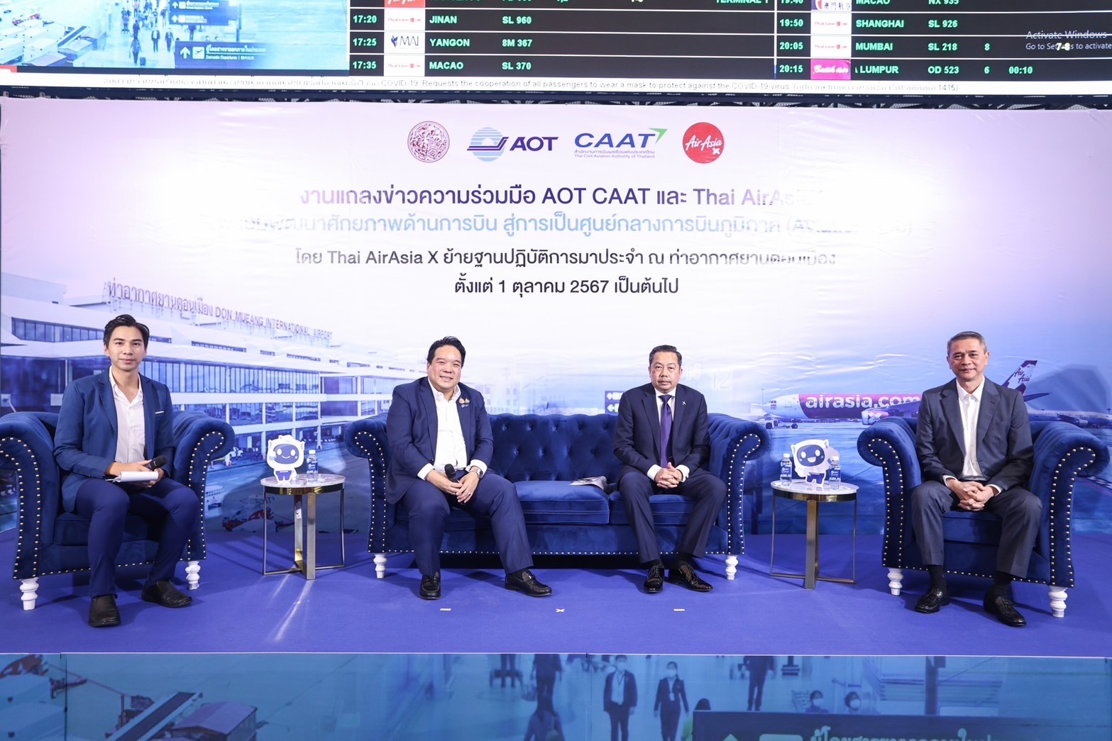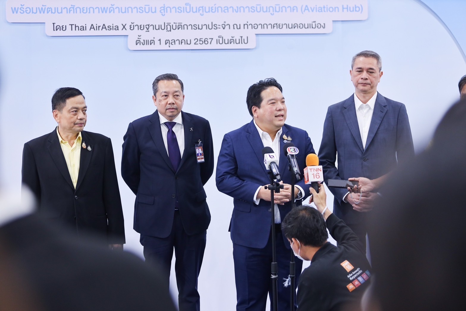 งานแถลงข่าว “ความร่วมมือ AOT CAAT และ Thai AirAsia X พร้อมพัฒนาศักยภาพด้านการบินสู่การเป็นศูนย์กลางการบินของภูมิภาค (Aviation Hub) โดย Thai AirAsia X ย้ายฐานปฏิบัติการมาประจำ ณ ท่าอากาศยานดอนเมือง ตั้งแต่ 1 ตุลาคม 2567 เป็นต้นไป”
