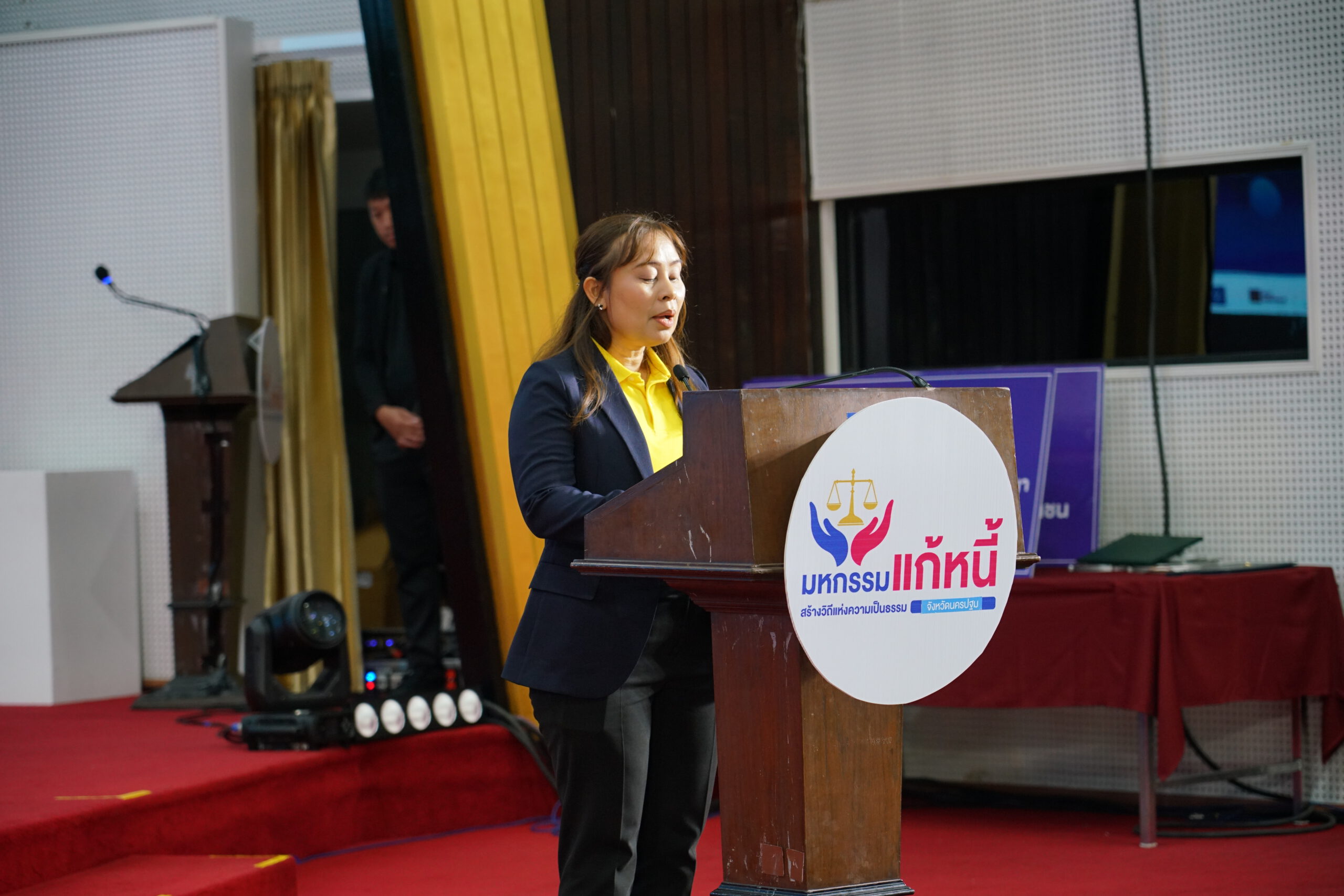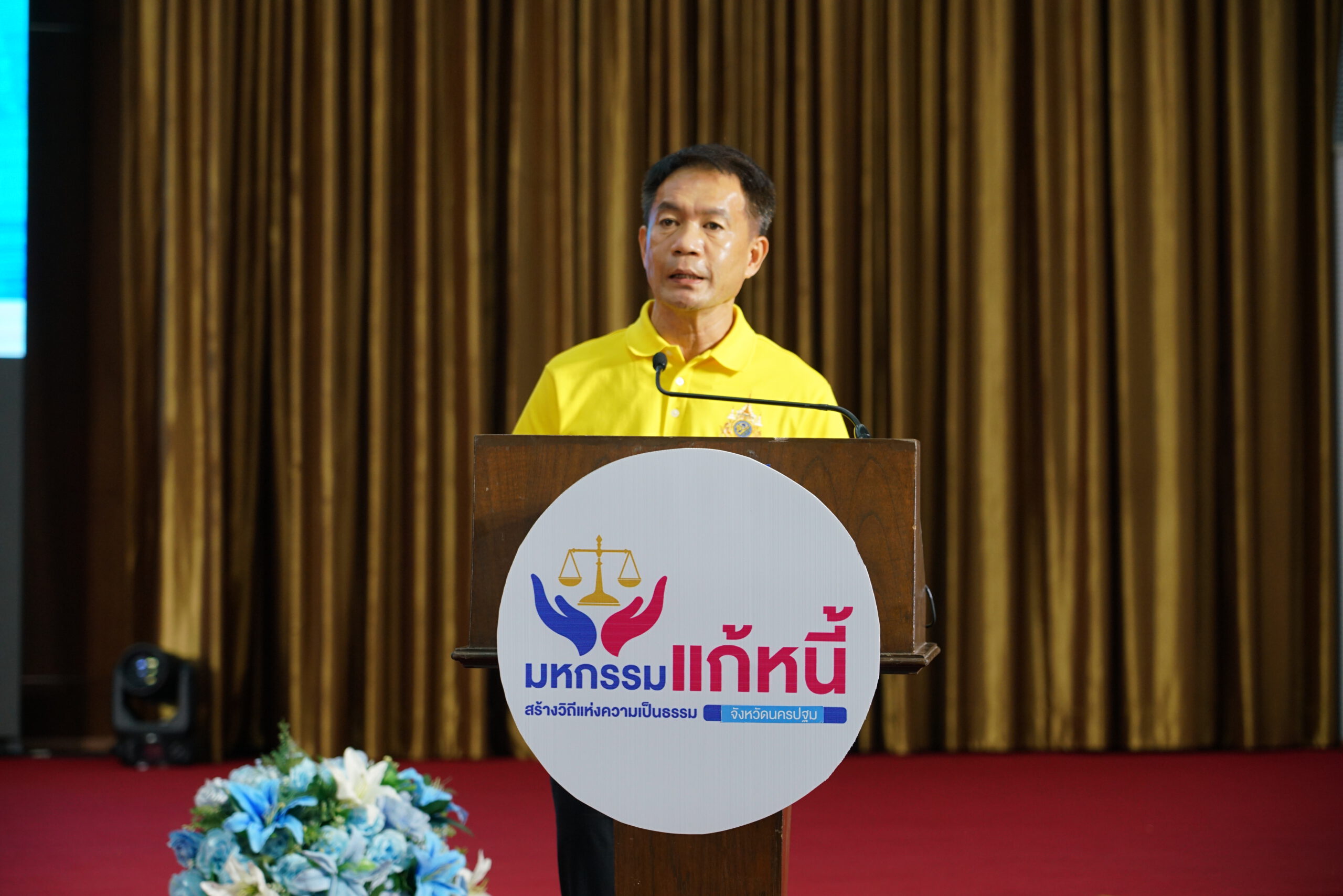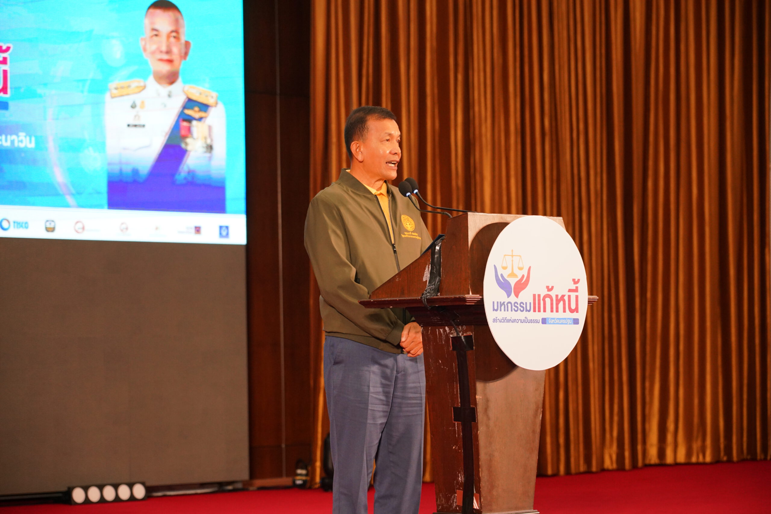 พลตำรวจโท พัฒนวุธ อังคะนาวิน ประจำสำนักเลขาธิการนายกรัฐมนตรี ปฏิบัติหน้าที่ประจำกระทรวงยุติธรรม เป็นประธานในพิธีเปิดงานมหกรรมแก้ไขหนี้สินประชาชนในพื้นที่ พร้อมสร้างการรับรู้ด้านกฎหมาย และเสริมสร้างวินัยทางการเงินอย่างยั่งยืน โดยมี นายยงยุทธ สวนทอง รองผู้ว่าราชการจังหวัดนครปฐม กล่าวต้อนรับ และมี นางถนอมพรรณ เลิศไกร ผู้อำนวยการสำนักงานยุติธรรมจังหวัดนครปฐม กล่าวรายงาน