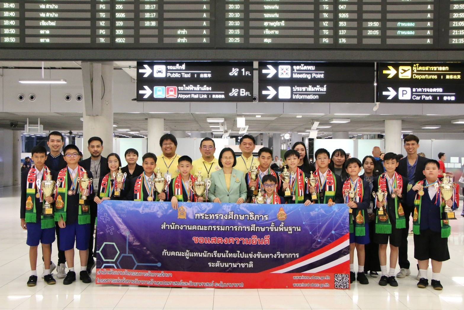 *****เมื่อวันที่ 19 กรกฎาคม 2567 ว่าที่ร้อยตรี ธนุ วงษ์จินดา เลขาธิการคณะกรรมการการศึกษาขั้นพื้นฐาน มอบหมายให้ นางสาวรัตนา แสงบัวเผื่อน ผู้อำนวยการสำนักพัฒนานวัตกรรมการจัดการศึกษา รักษาการในตำแหน่งที่ปรึกษาด้านพัฒนากระบวนการเรียนรู้ ร่วมต้อนรับและแสดงความยินดีกับคณะตัวแทนนักเรียนไทยที่ได้รับรางวัลในการแข่งขันคณิตศาสตร์โลกระดับประถมศึกษา ประจำปี พ.ศ. 2567 : Po Leung Kuk Primary Mathematics World Contest 2024 (PMWC 2024) จำนวน 12 คน ณ ท่าอากาศยานสุวรรณภูมิ โดยมีผู้บริหารโรงเรียน คณะครู และครอบครัวนักเรียน ร่วมต้อนรับและแสดงความยินดีด้วย